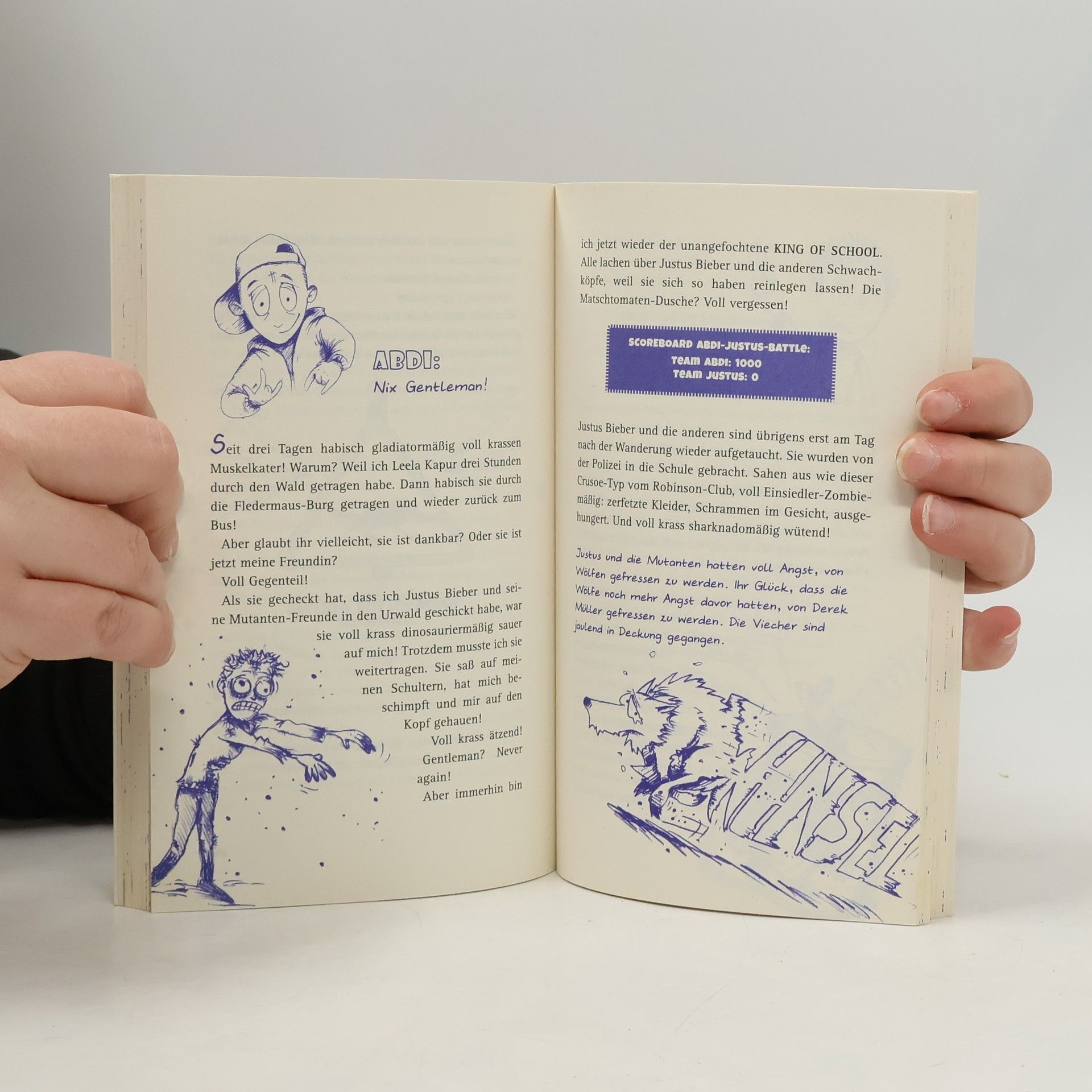 Auf diesem Schulhof kann es nur einen geben… einen King of Chaos! Ich, Justus Bachmann, sehe meinem garantierten Ende entgegen: Neue Stadt, neues Haus, neue SCHULE! Auf dem Schulhof wird mir schon beim ersten Betreten klar mit wem ich es hier zu tun kriege: Abdi grinst wie ein T-Rex vorm Frühstück und führt seine Gang direkt auf mich zu. Gleich werden sie mich zu Fischfutter verarbeiten. „Binisch King of School“, verkündet Abdi und da passiert mir leider etwas sehr Dummes: Ich fange an zu lachen, laut und wiehernd. Ich krieg mich gar nicht wieder ein. King of School? Träum weiter! Es wird hier ganz sicher nur einen King geben, und der - bin ich! Weitere Bände der Reihe: Kings of Chaos (2) Fit wie ein Faultier Kings of Chaos (3) Bleib locker, Stinktier!
