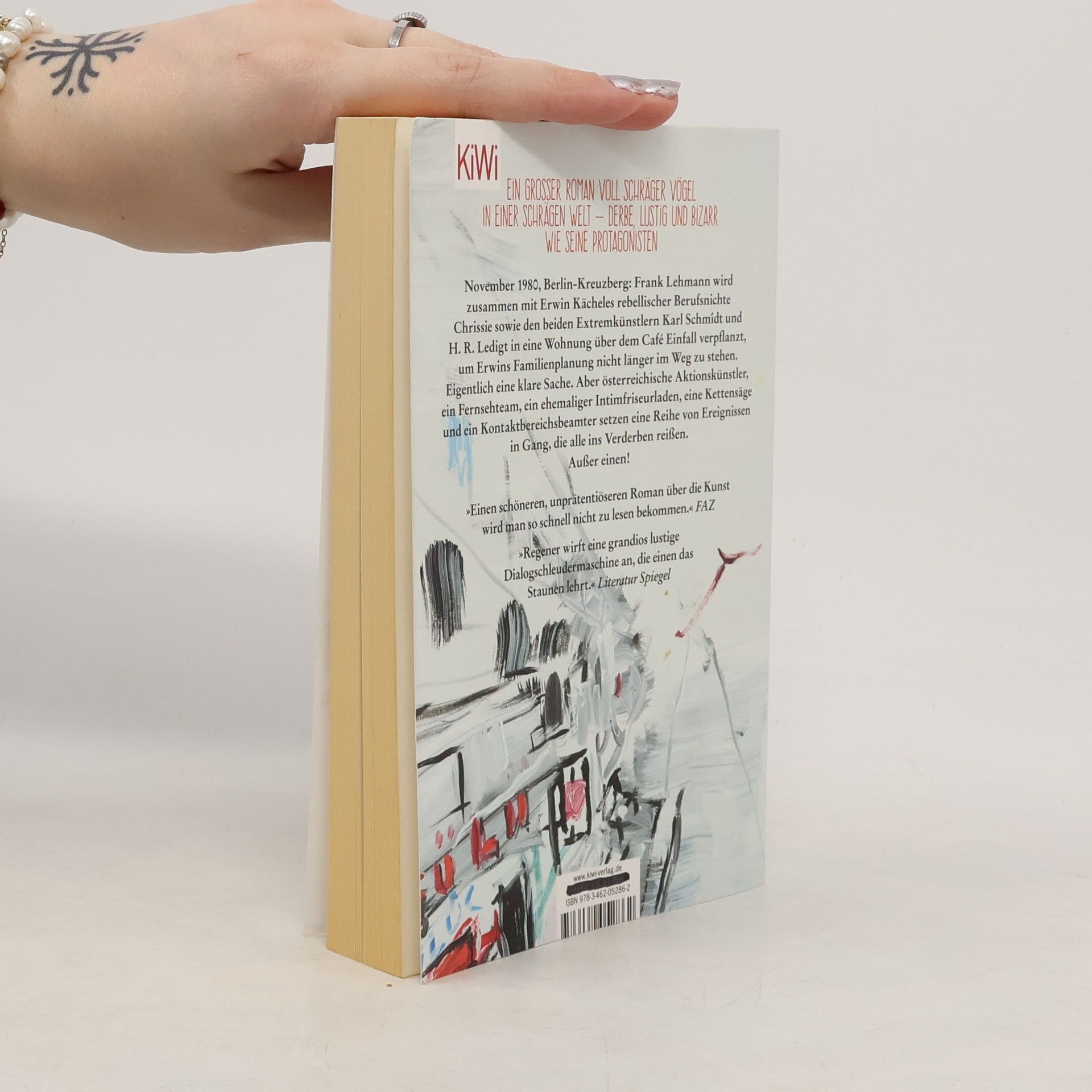 100.000 verkaufte Exemplare des Hardcovers – erstmals als Taschenbuch. Kreuzberg vor dem Mauerfall – ein kreativer Urknall, eine surreale Welt aus Künstlern, Hausbesetzern, Freaks und Punks. Jeder reibt sich an jedem. Jeder kann ein Held sein. Alles kann das nächste große Ding werden, Kunst ist das Gebot der Stunde. Und wer könnte böser, lustiger und liebevoller darüber schreiben als Sven Regener? November 1980: Frank Lehmann wird mit der rebellischen Berufsnichte Chrissie sowie den Extremkünstlern Karl Schmidt und H. R. Ledigt in eine Wohnung über dem Café Einfall verpflanzt, um Erwin Kächeles Familienplanung nicht länger im Weg zu stehen. Österreichische Aktionskünstler, ein Fernsehteam, ein ehemaliger Intimfriseurladen, eine Kettensäge, ein Kontaktbereichsbeamter, eine Kreuzberger Kunstausstellung, der Kampf um die Einkommensoptionen Putzjob und Kuchenverkauf, der Besuch einer Mutter und ein Schwangerschaftssimulator setzen eine Kette von Ereignissen in Gang, die alle ins Verderben reißen. Außer einen!