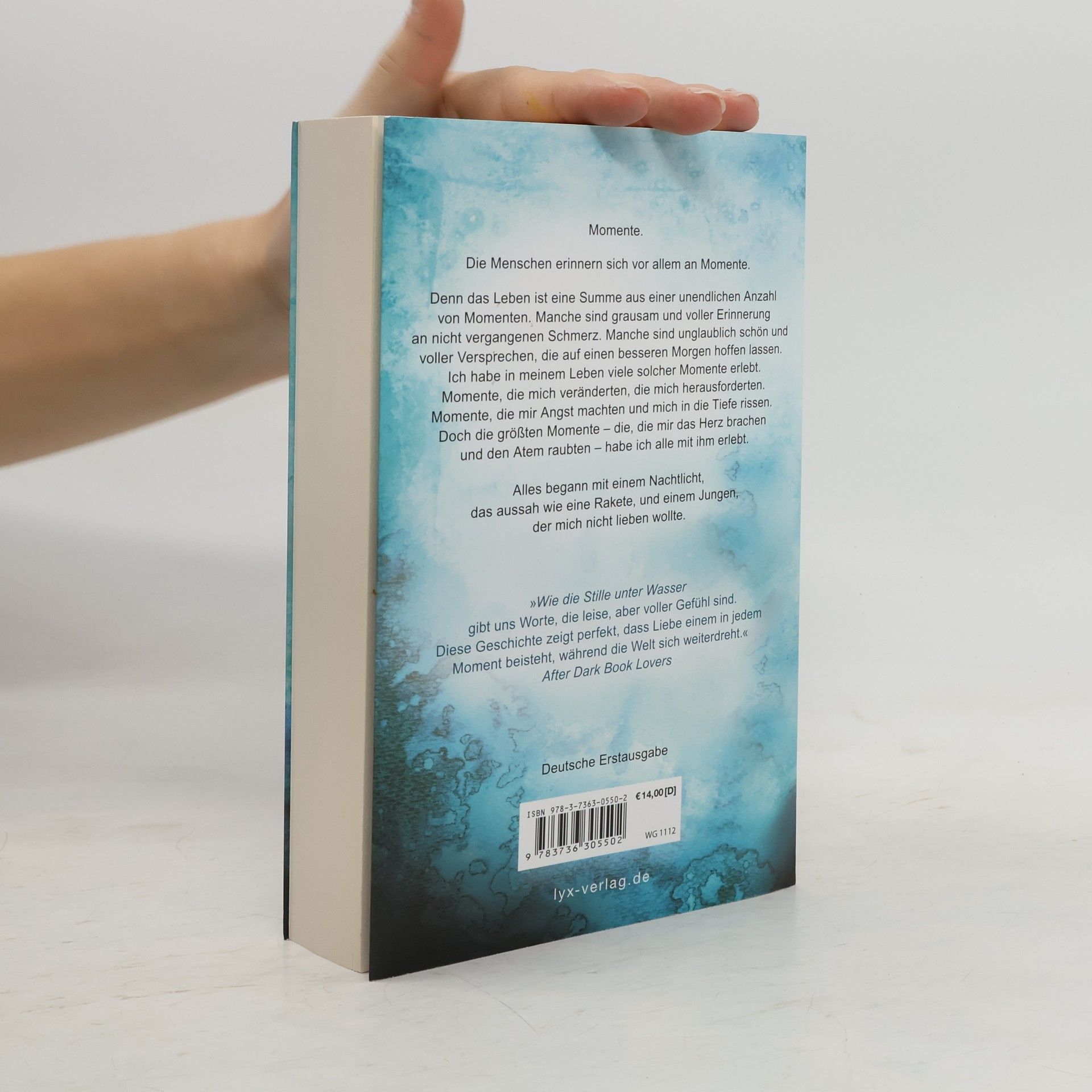 Momente. Die Menschen erinnern sich vor allem an Momente. Denn das Leben ist eine Summe aus einer unendlichen Anzahl von Momenten. Manche sind grausam und voller Erinnerung an nicht vergangenen Schmerz. Manche sind unglaublich schön und voller Versprechen, die auf einen besseren Morgen hoffen lassen. Ich habe in meinem Leben viele solcher Momente erlebt. Momente, die mich veränderten, die mich herausforderten. Momente, die mir Angst machten und mich in die Tiefe rissen. Doch die größten Momente - die, die mir das Herz brachen und den Atem raubten - habe ich alle mit ihm erlebt. Alles begann mit einem Nachtlicht, das aussah wie eine Rakete, und einem Jungen, der mich nicht lieben wollte. „Wie die Stille unter Wasser gibt uns Worte, die leise aber voller Gefühl sind. Diese Geschichte zeigt perfekt, dass Liebe einem in jedem Moment beisteht, während die Welt sich weiterdreht!“ After Dark Book Lovers Band 3 der Romance-Elements-Reihe von Bestseller-Autorin Brittainy C. Cherry