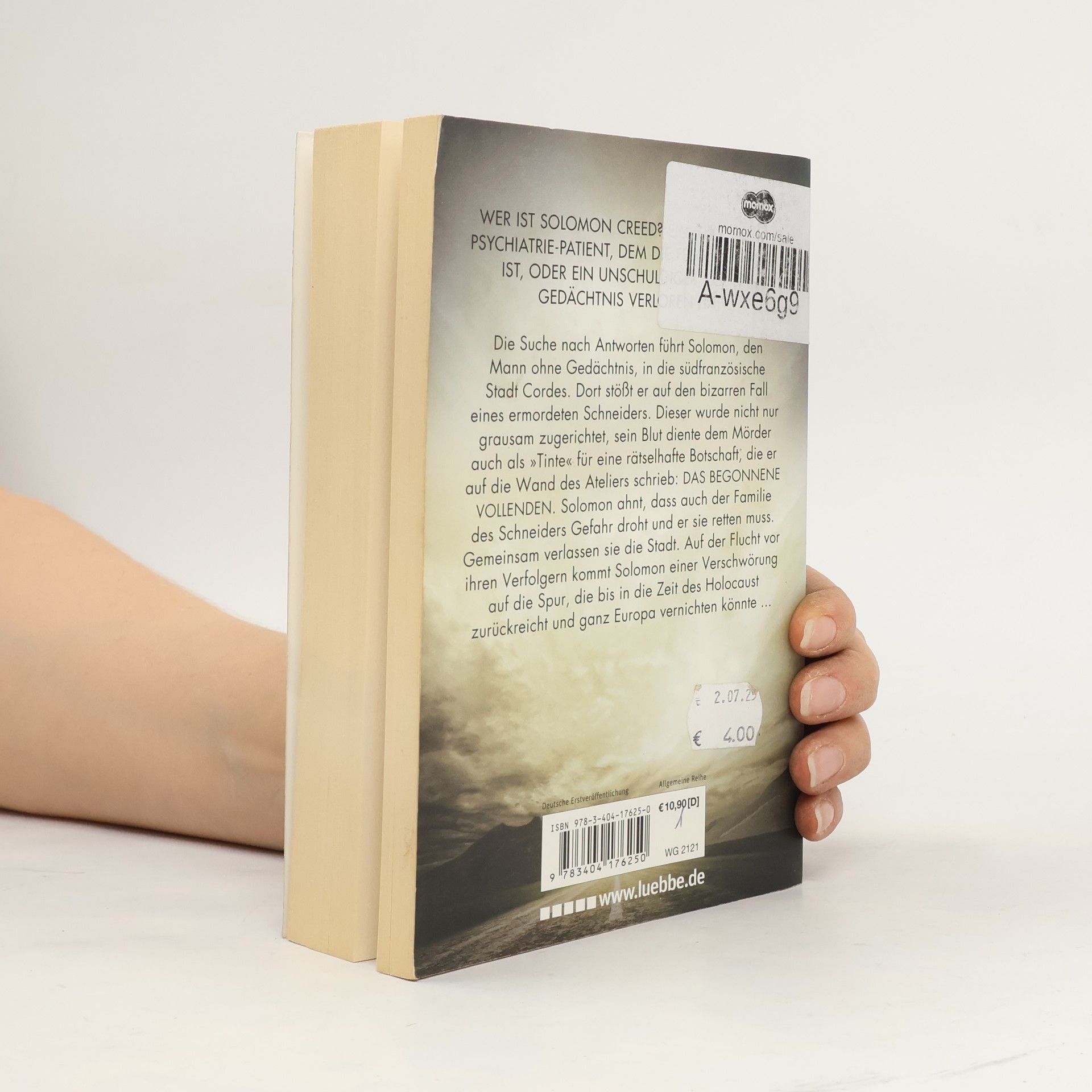 Wer ist Solomon Creed? Ein gefährlicher Psychiatrie-Patient, dem die Flucht geglückt ist, oder ein Unschuldiger, der sein Gedächtnis verloren hat? Die Suche nach Antworten führt Solomon, den Mann ohne Gedächtnis, in die südfranzösische Stadt Cordes. Dort stößt er auf den bizarren Fall eines ermordeten Schneiders. Dieser wurde nicht nur grausam zugerichtet, sein Blut diente dem Mörder auch als „Tinte“ für eine rätselhafte Botschaft, die er auf die Wand des Ateliers schrieb: DAS BEGONNENE VOLLENDEN. Solomon ahnt, dass auch der Familie des Schneiders Gefahr droht und er sie retten muss. Gemeinsam verlassen sie die Stadt. Auf der Flucht vor ihren Verfolgern kommt Solomon einer Verschwörung auf die Spur, die bis in die Zeit des Holocaust zurückreicht und ganz Europa vernichten könnte ... Der neue Thriller des internationalen Bestsellerautors Simon Toyne