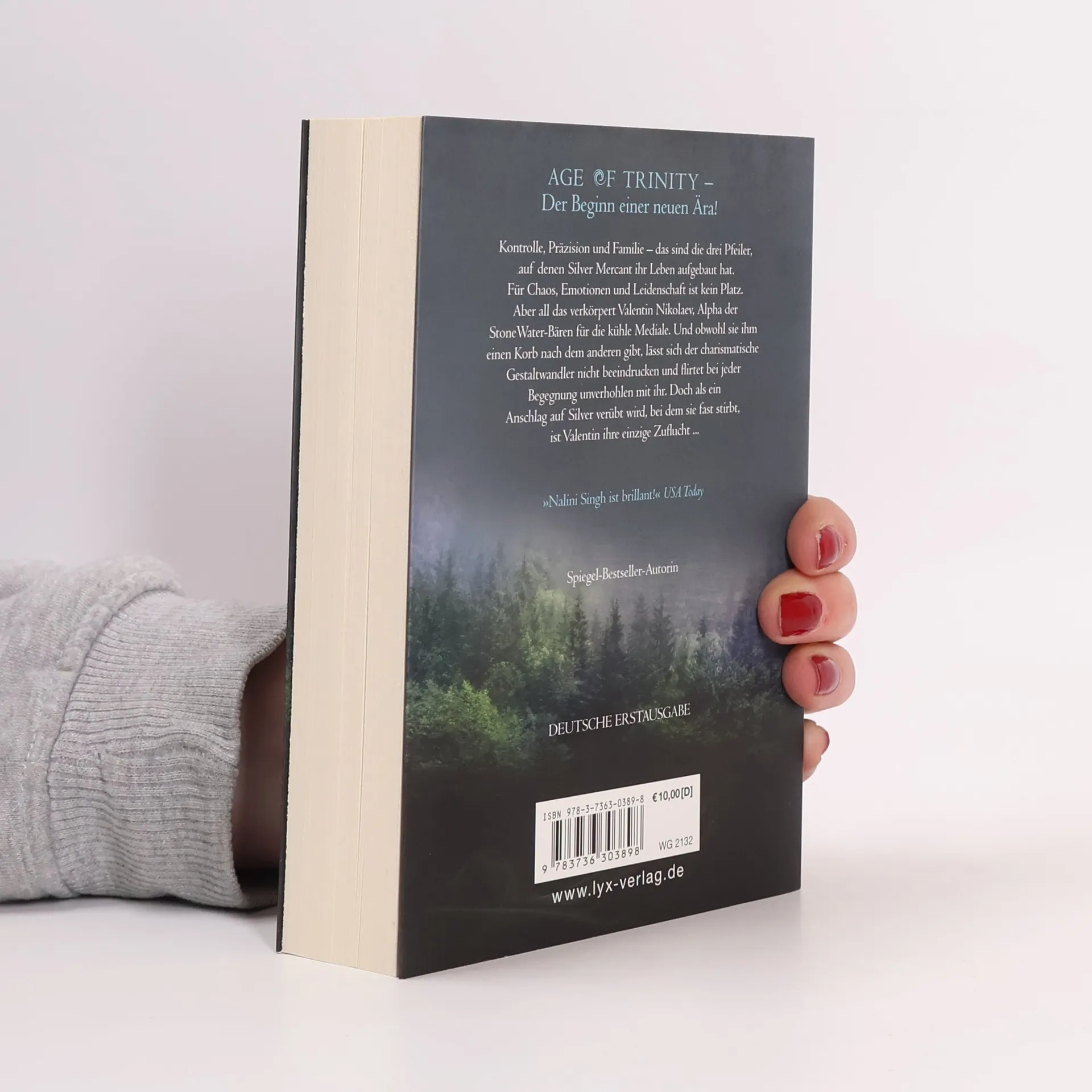 AGE OF TRINITY - der Beginn einer neuen Ära Kontrolle, Präzision und Familie - das sind die drei Pfeiler, auf denen die Mediale Silver Mercant ihr Leben aufgebaut hat. Für Chaos, Emotionen und Leidenschaft ist kein Platz. Aber all das verkörpert Valentin Nikolaev, Alpha der StoneWater-Bären für die kühle Mediale. Und obwohl sie ihm einen Korb nach dem anderen gibt, lässt sich der charismatische Gestaltwandler nicht beeindrucken und flirtet bei jeder Begegnung unverhohlen mit ihr. Doch als ein Anschlag auf Silver verübt wird, bei dem sie fast stirbt, ist Valentin ihre einzige Zuflucht... „Nalini Singh ist brillant!“ USA Today
