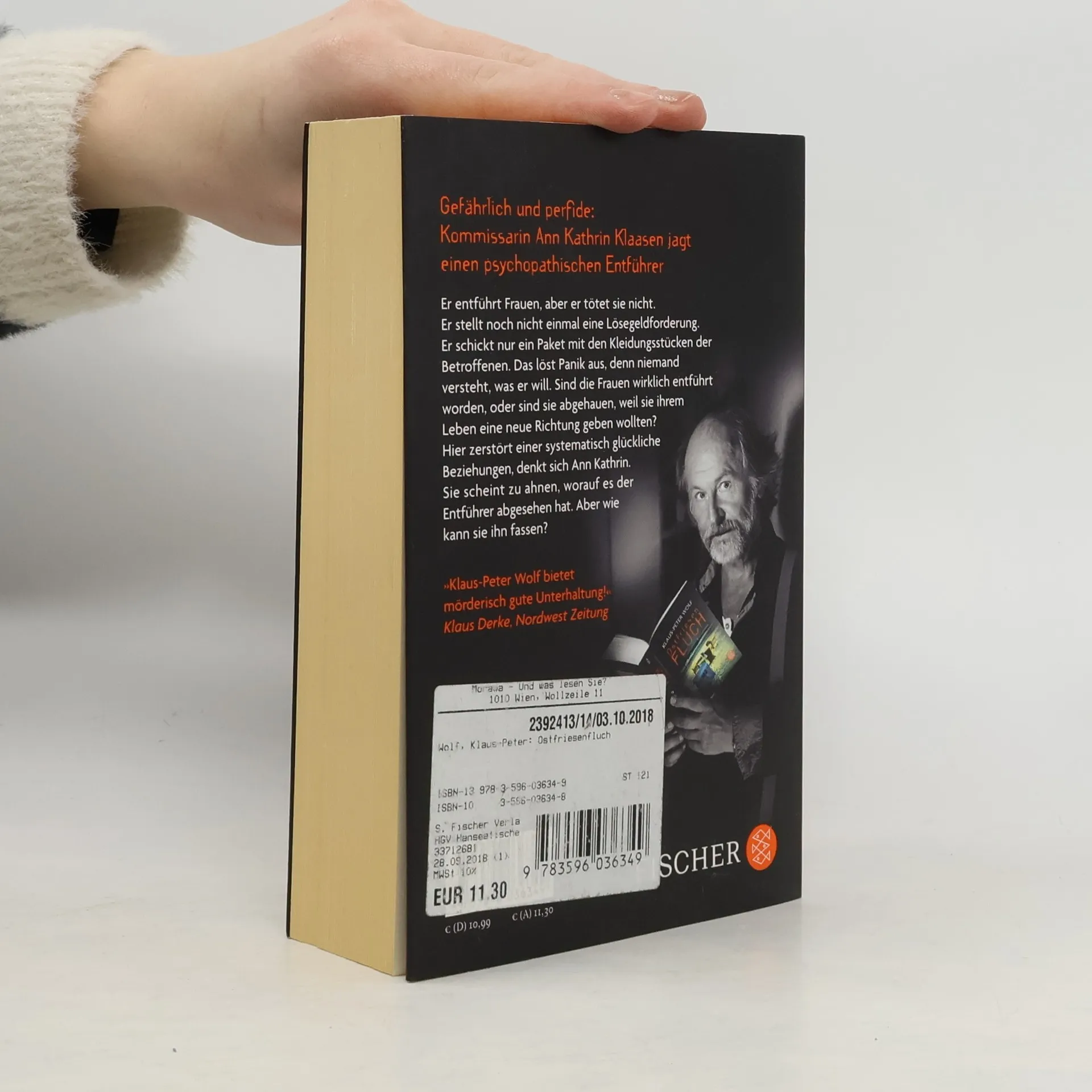 Spannend, raffiniert und tief verwurzelt in einer einzigartigen Landschaft: „Ostfriesenfluch“ ist der neue Kriminalroman von Nummer 1- Bestsellerautor Klaus-Peter Wolf mit Ostfrieslands berühmtester Kommissarin Ann Kathrin Klaasen. Die Nummer 1 der SPIEGEL- Bestsellerliste Er entführt Frauen, aber er tötet sie nicht. Er stellt noch nicht einmal eine Lösegeldforderung. Er schickt nur ein Paket mit den Kleidungsstücken der Betroffenen. Das löst Panik aus, denn niemand versteht, was er will. Sind die Frauen wirklich entführt worden, oder sind sie abgehauen, weil sie ihrem Leben eine neue Richtung geben wollten? Hier zerstört einer systematisch glückliche Beziehungen, denkt sich Ann Kathrin. Sie scheint zu ahnen, worauf es der Entführer abgesehen hat. Aber wie kann sie ihn fassen? Ein psychopathischer Täter, der das Glück der anderen zerstören will: Perfide und raffiniert zeichnet Nummer Eins-Bestsellerautor Klaus-Peter Wolf das Psychogramm einer verwundeten Seele.