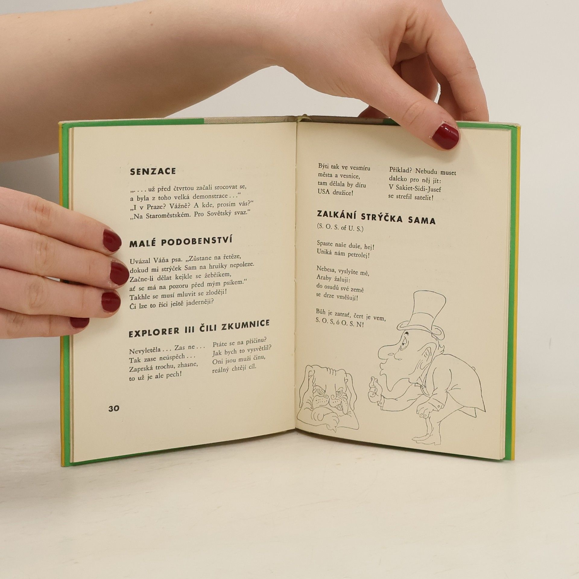 Sbírka satirických veršů z let 1956-1958 vtipně komentuje záporné jevy našeho soukromého a veřejného života i mezinárodní události.