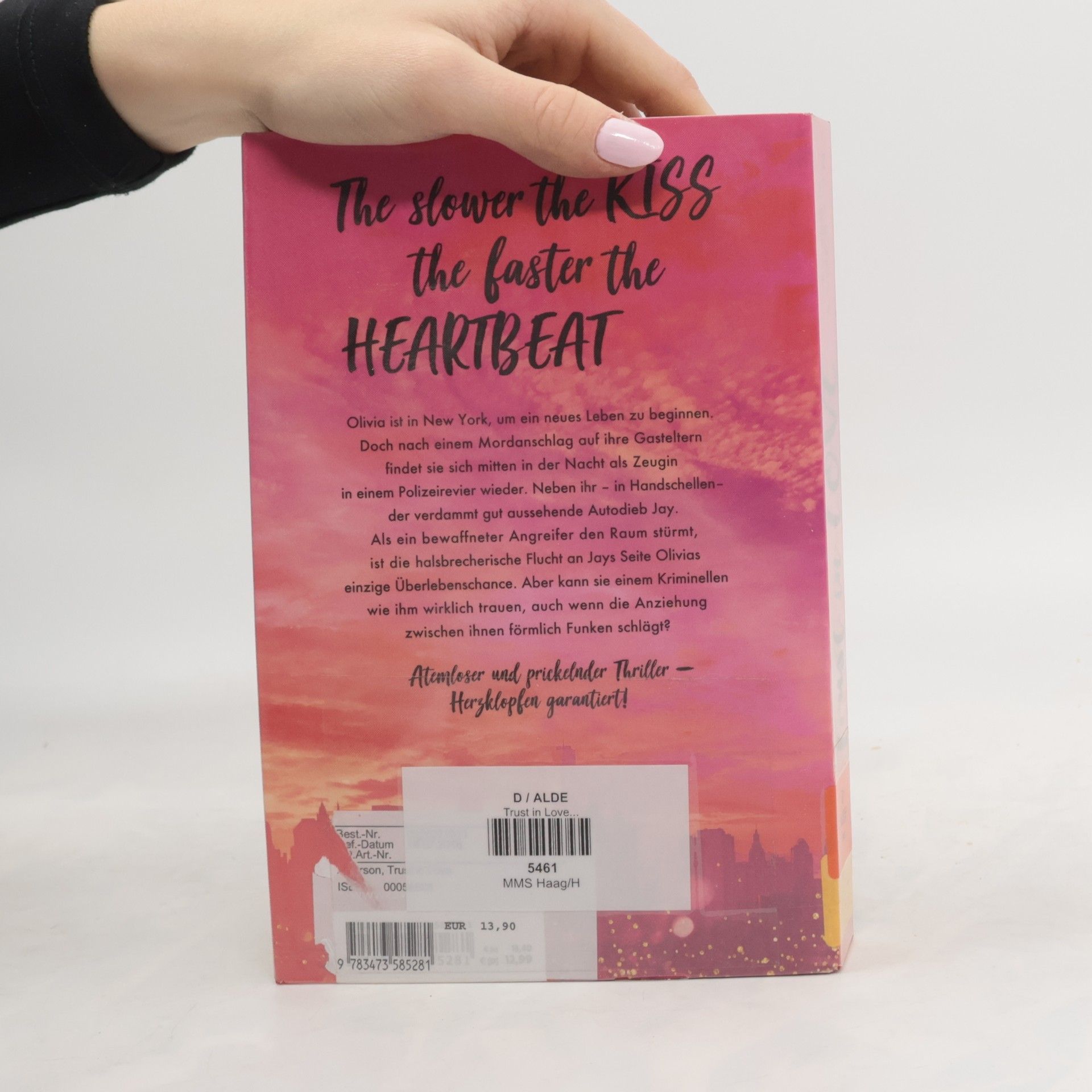 The slower the kissthe faster the heartbeat Olivia ist in New York, um ein neues Leben an der Ballettakademie zu beginnen. Doch nach einem Mordanschlag auf ihre Gasteltern findet sie sich mitten in der Nacht als Zeugin in einem Polizeirevier wieder. Neben ihr – in Handschellen – der verdammt gutaussehende Autodieb Jamie. Als ein bewaffneter Angreifer den Raum stürmt, ist die halsbrecherische Flucht an Jamies Seite Olivias einzige Überlebenschance. Aber kann sie einem Kriminellen wie ihm wirklich trauen, auch wenn die Anziehung zwischen ihnen förmlich Funken schlägt? Als die beiden weiter verfolgt werden und sie erkennen, dass auch Polizei und FBI verstrickt sind, wächst in Olivia ein schrecklicher Verdacht: Sind die Killer in Wahrheit hinter ihr her? *** Adrenalingeladene und prickelnde Romance- einfach unwiderstehlich! ***