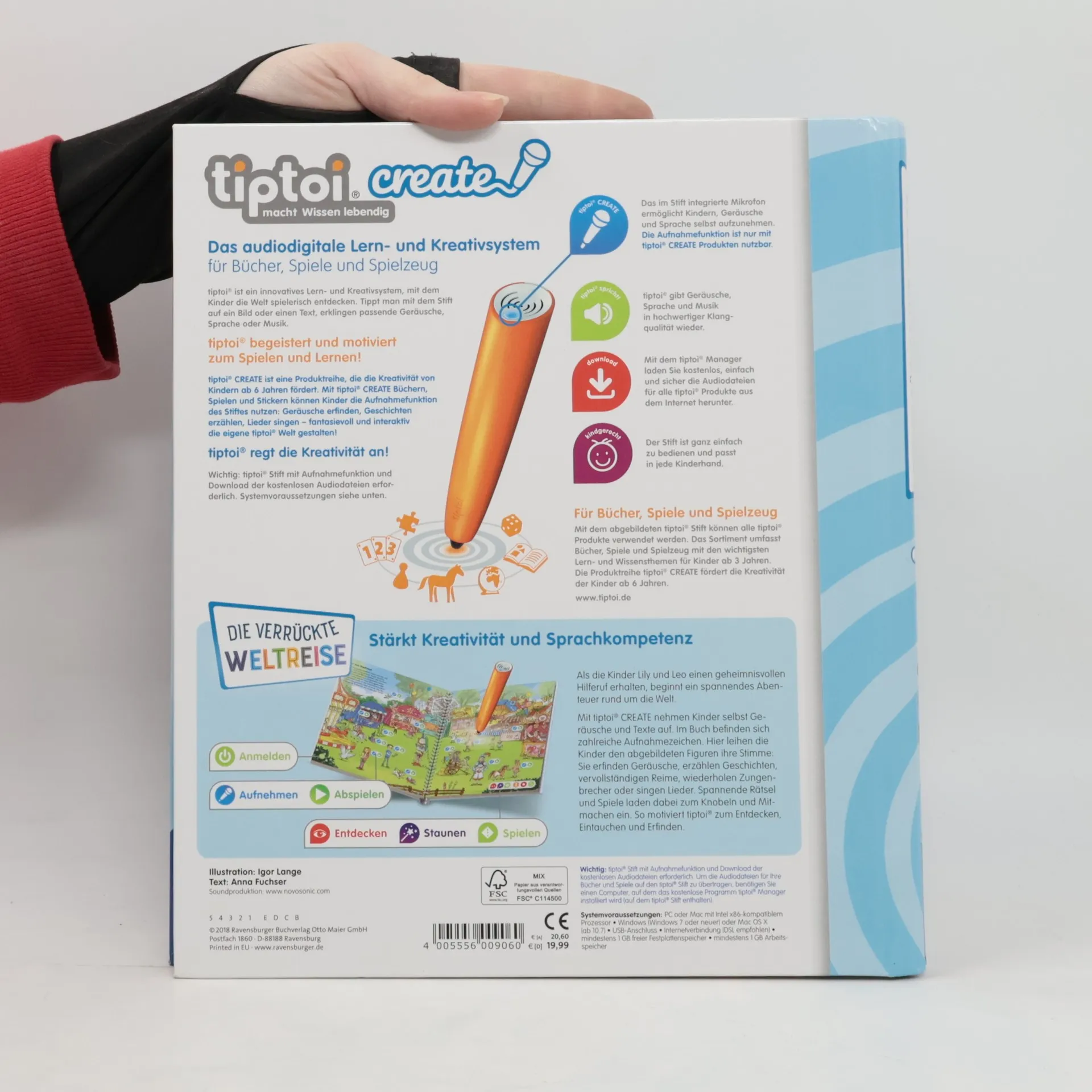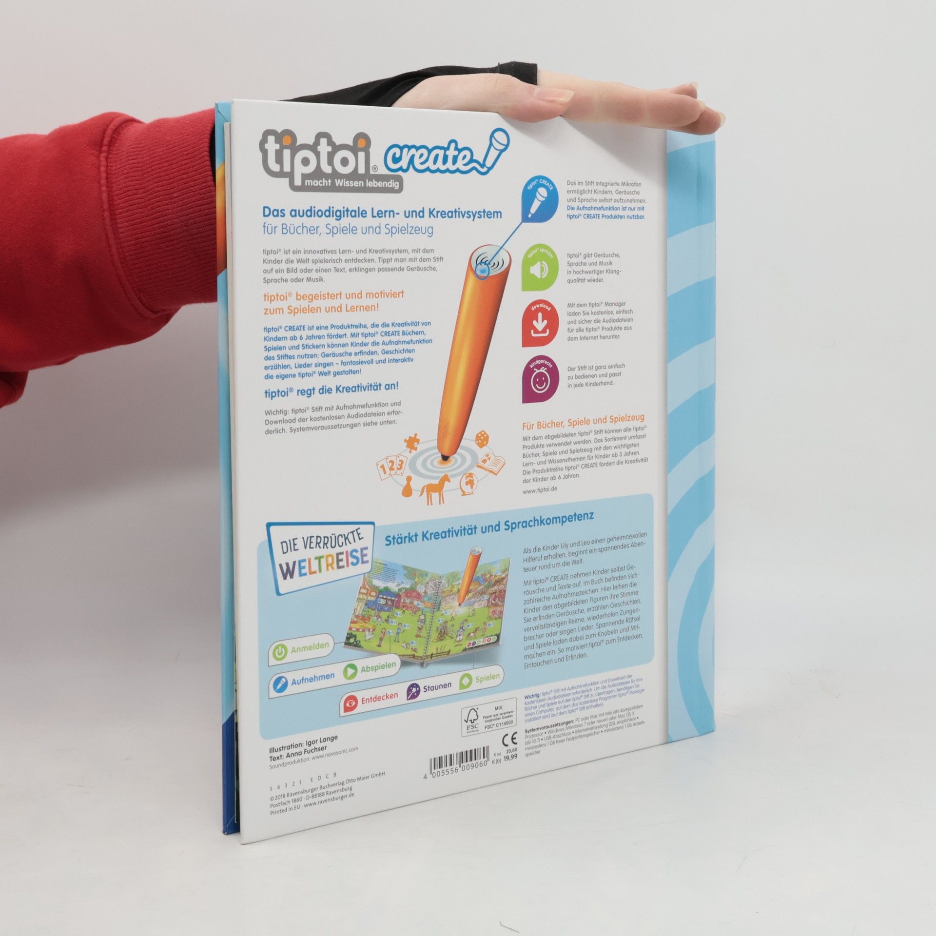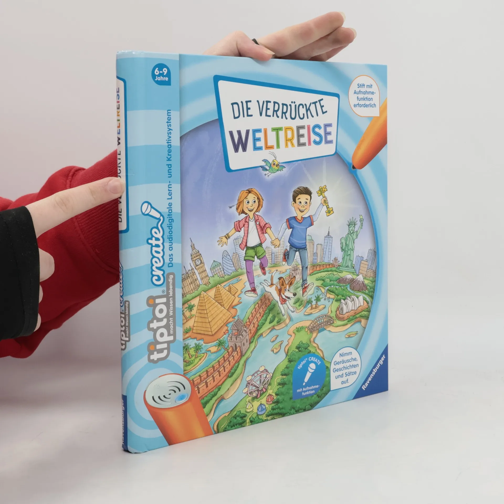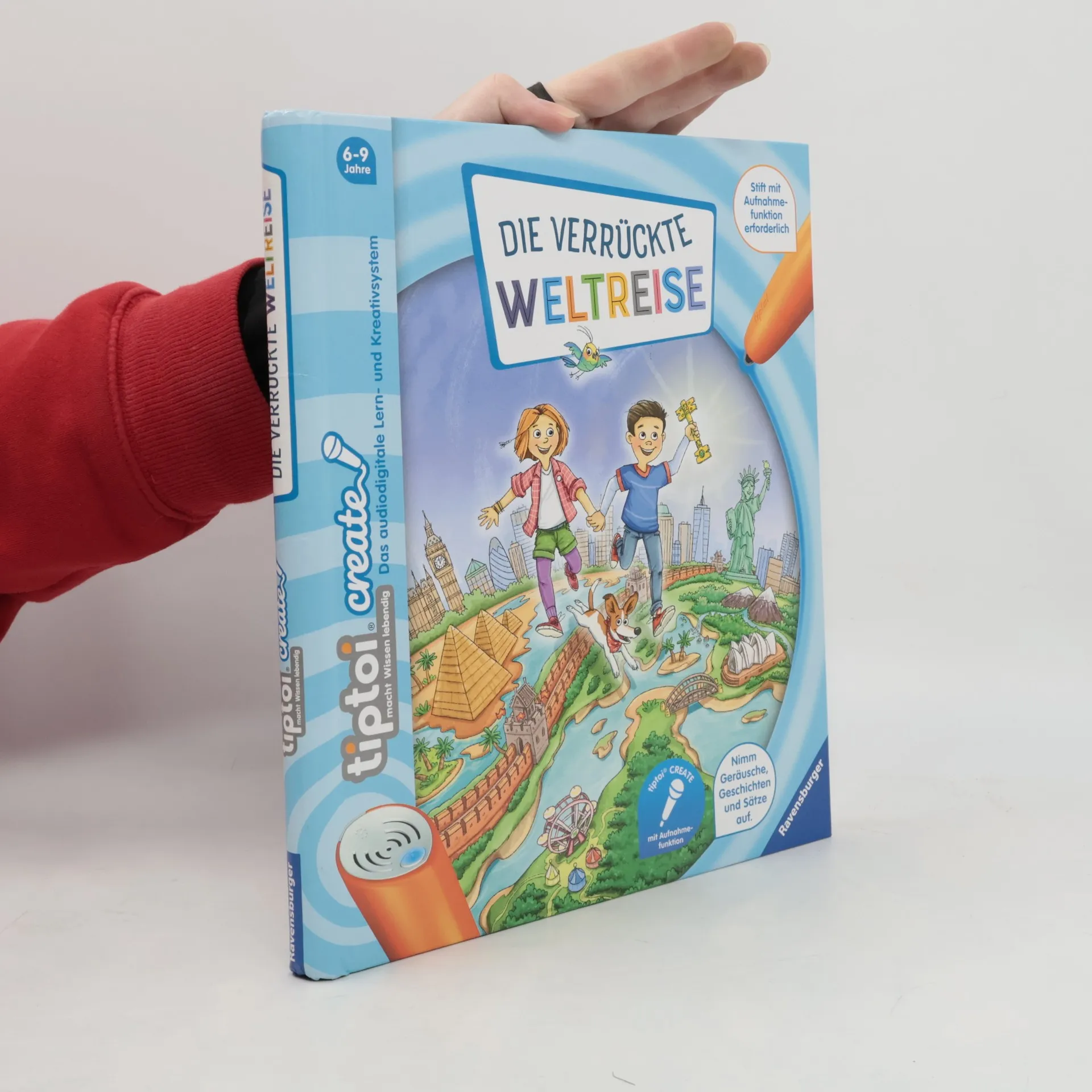Reise um die Welt und finde Onkel Henry! Als die Kinder Lily und Leo einen geheimnisvollen Hilferuf erhalten, beginnt ein spannendes Abenteuer rund um die Welt. Im Buch befinden sich zahlreiche Aufnahmezeichen. Hier leihen die Kinder den abgebildeten Figuren ihre Stimme: Sie erfinden Geräusche, erzählen Geschichten, vervollständigen Reime, wiederholen Zungenbrecher oder singen Lieder. Spannende Rätsel und Spiele laden dabei zum Knobeln und Mitmachen ein. tiptoi CREATE fördert die Kreativität! Mit der Produktreihe für den tiptoi-Stift mit Aufnahmefunktion gestalten Kinder ab 6 Jahren fantasievoll und interaktiv ihre eigene tiptoi-Welt. Die detailreichen Illustrationen der Produkte werden durch überraschende Geräusche und witzige Dialoge lebendig. In den CREATE-Büchern und Spielen gibt es zahlreiche Anregungen zum Geschichten erzählen, Geräusche ausdenken, Lieder singen oder Spiele erfinden. So werden die Kinder mit ihren eigenen Sprachaufnahmen zur Heldin oder zum Helden ihres Abenteuers. Es entsteht ein individuelles Buch oder Spiel, das immer wieder mit neuen Ideen verändert werden kann. Funktioniert nur mit dem tiptoi-Stift mit Aufnahmefunktion. Stift muss separat erworben werden.