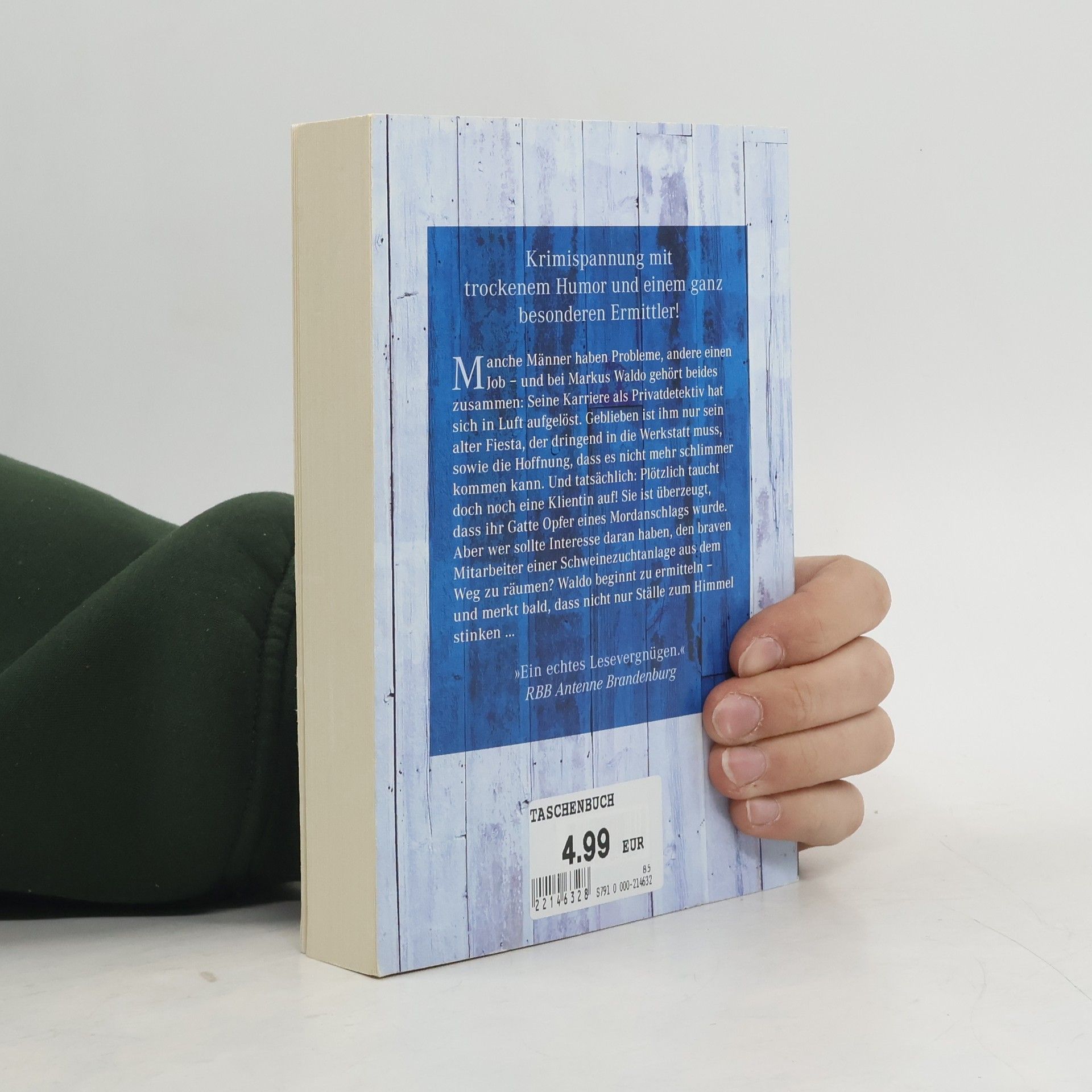 Manche Männer haben Probleme, andere einen Job – und bei Markus Waldo gehört beides zusammen: Seine Karriere als Privatdetektiv hat sich in Luft aufgelöst. Geblieben ist ihm nur sein alter Fiesta, der dringend in die Werkstatt muss, sowie die Hoffnung, dass es nicht mehr schlimmer kommen kann. Und tatsächlich: Plötzlich taucht doch noch eine Klientin auf! Sie ist überzeugt, dass ihr Gatte Opfer eines Mordanschlags wurde. Aber wer sollte Interesse daran haben, den braven Mitarbeiter einer Schweinezuchtanlage aus dem Weg zu räumen? Waldo beginnt zu ermitteln – und merkt bald, dass nicht nur Ställe zum Himmel stinken …