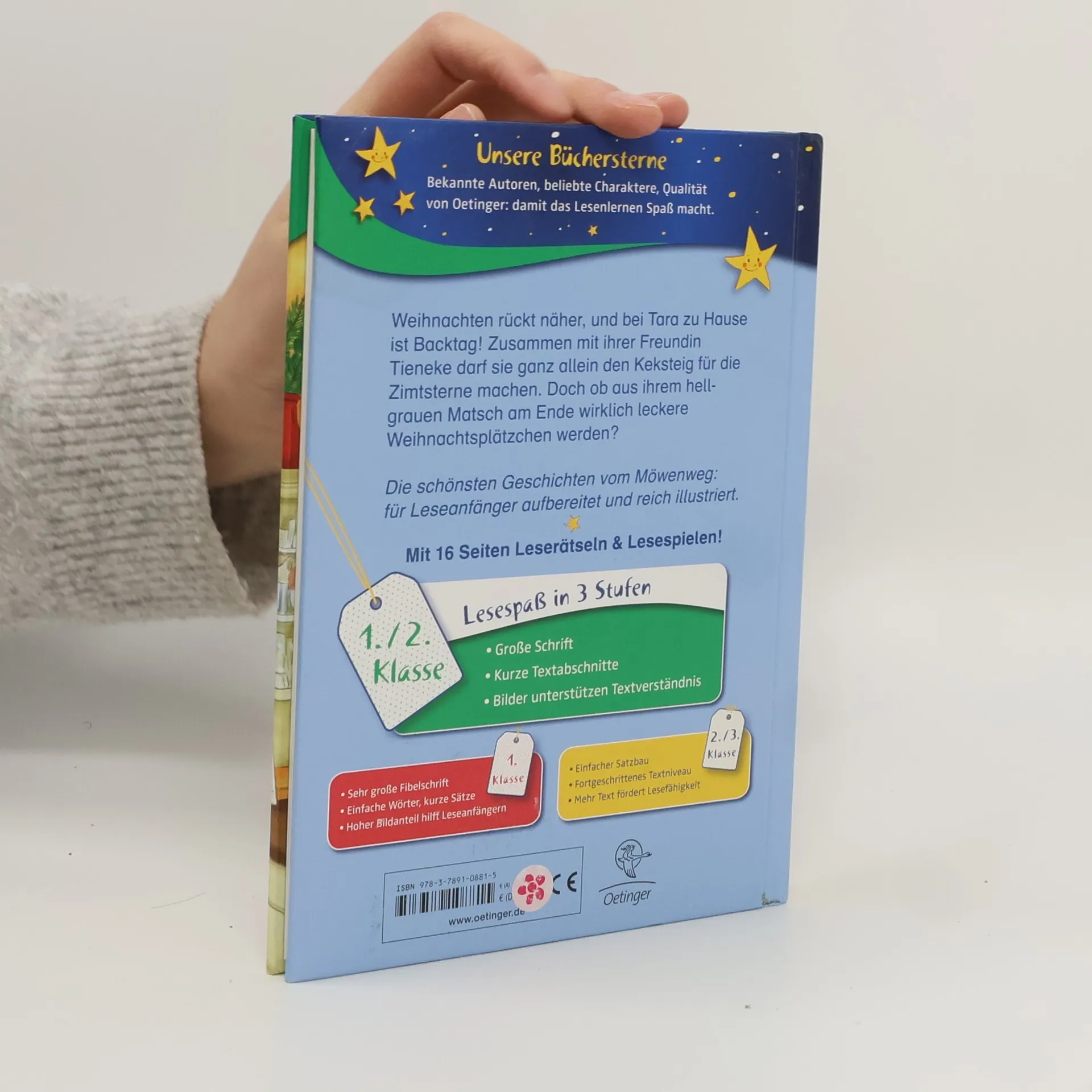 Es ist Weihnachten im Möwenweg und es duftet nach Keksen. Was könnte schöner sein als die Vorfreude auf Weihnachten? Tara findet, dass jeder Tag im Advent ein besonderer Tag ist. Denn bis endlich Weihnachten ist, müssen noch jede Menge Vorbereitungen getroffen werden. Gemeinsam backen die Kinder Kekse und entdecken dabei sogar ein ganz neues Rezept. Eine neue weihnachtliche Geschichte aus dem Möwenweg von Kirsten Boie, ideal zum Lesenlernen für Schüler der 1. und 2. Klasse, mit 16 Seiten Leserätseln und -spielen.