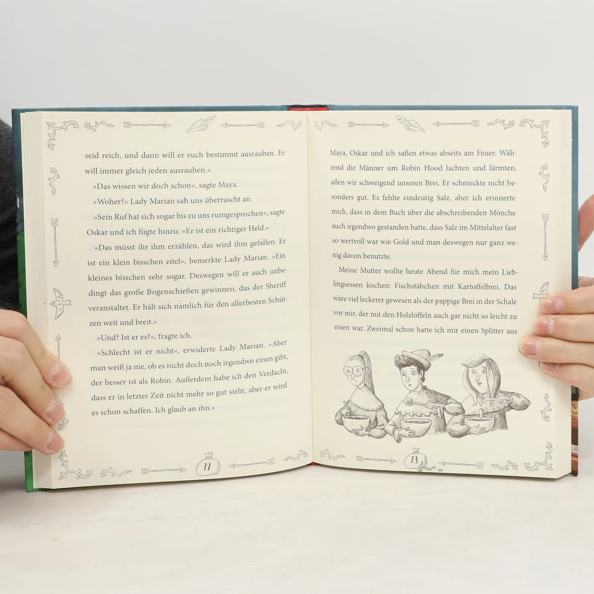 Oskar, Maya und Emma sieht man nie draußen im Park oder auf dem Fußballplatz. Sie treffen sich jeden Tag in der Bibliothek. Dann sprechen sie nicht viel miteinander, sondern lesen sich quer durch die Regale: Pferdebücher, Fantasyromane, Jungen- oder Mädchenbücher, ganz egal. Hauptsache, es hat viele, viele Seiten und ist spannend. Doch so ein Buch wie das, welches Frau Müller-Liebelein ihnen eines Tages anvertraut, ist ihnen noch nie begegnet. Es lässt sie einfach in seine Geschichte springen. Plötzlich befinden sich die drei im mittelalterlichen England, wo Bücher rar sind und Lesen eine große Kunst. Hier treffen sie keinen anderen als Robin Hood und der hat ihre Hilfe wahrlich nötig ... Witzig und frech: Klassiker auf den Kopf gestellt - nicht nur für Leseratten!