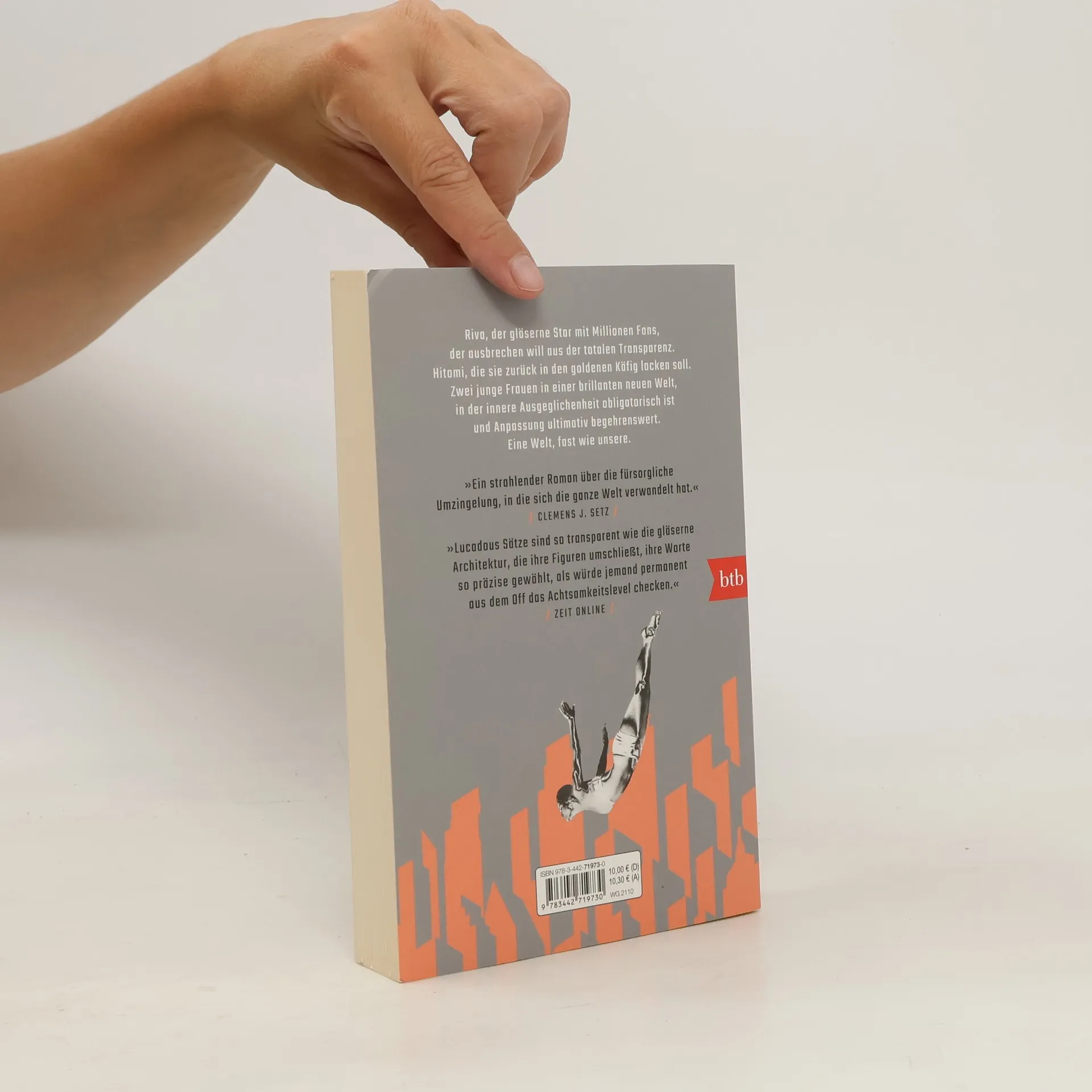»Ein strahlender Roman über die fürsorgliche Umzingelung, in die sich die ganze Welt verwandelt hat.« Clemens J. Setz Riva ist Hochhausspringerin – ein perfekt funktionierender Mensch mit Millionen Fans. Doch plötzlich weigert sie sich zu trainieren. Kameras sind allgegenwärtig in ihrer Welt, aber sie weiß nicht, dass sie gezielt beobachtet wird: Denn Riva soll wieder gefügig gemacht werden, sonst droht die Ausweisung in die Peripherien, wo die Menschen im Schmutz leben, ohne die Möglichkeit, der Gesellschaft zu dienen...