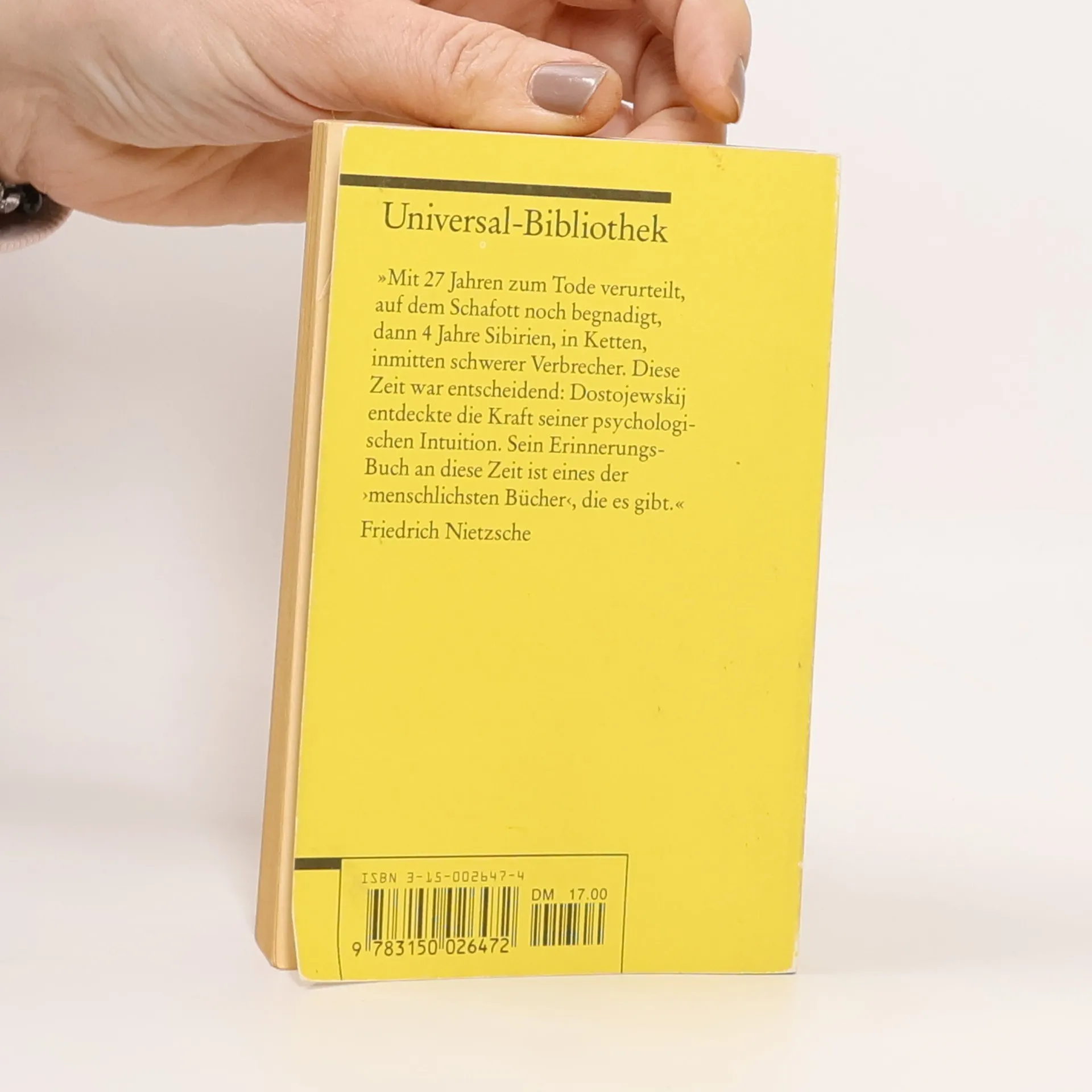 Dieses Buch, das auf Dostojewskijs eigenen Erfahrungen beruht - „4 Jahre Sibirien, in Ketten, inmitten schwerer Verbrecher“-, machte seinen Autor berühmt. Nietzsche nannte es „eines der menschlichsten Bücher, die es gibt“. In der eindringlichen deutschen Übersetzung von Hermann Röhl, mit einem neuen Nachwort und Literaturhinweisen versehen, liegt der Roman jetzt wieder in der Universal-Bibliothek vor.