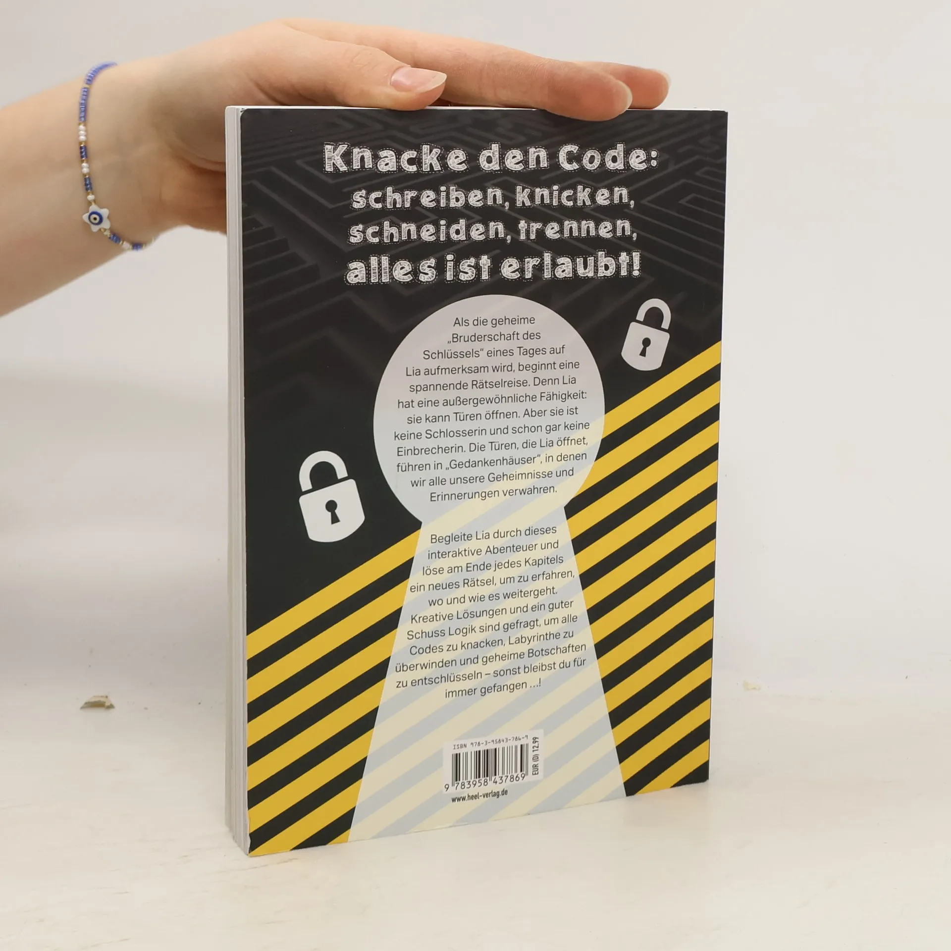 Lia hat eine seltsame Begabung: sie kann Türen öffnen. Aber sie ist keine Schlosserin und erst recht keine Einbrecherin. Die Türen, die sie öffnet, sind die von „mentalen Häusern“, in denen wir alle unsere Geheimnisse und Erinnerungen hüten. Die „Brüderschaft des Schlüssels“, eine Gruppe fortgeschrittener Türöffner, hat Lia angeboten, sich ihnen anzuschließen, aber zuerst möchten sie sich ihres Talents vergewissern. Kannst du Lia helfen? Du musst dazu Deinen Verstand, Deine Logik und Kreativität einsetzen. „Escape Kids“ ist der kreative Rätselspaß für Schulhof, Zug, Flugzeug und lange Autofahrten! Das ultimative Rätsel- und Leseabenteuer auch für kleine Lesemuffel und das perfekte Geschenk für Kindergeburtstage, für das Enkelkind, Patenkind, als Beschäftigungsbuch für die Reise oder als Mitbringsel zu einem Escape Room-Ausflug. In der „Escape Room“- Reihe im HEEL-Verlag außerdem erschienen: „Sherlock Holmes - Das Escape Buch“, „Escape Room - Die unsichtbare Bedrohung“, "Escape Room - Knacke den Türcode und Rätsel' dich frei„ - alle Bücher mit kniffligen Knobel- und Logik-Aufgaben für “große" Rätselfans!