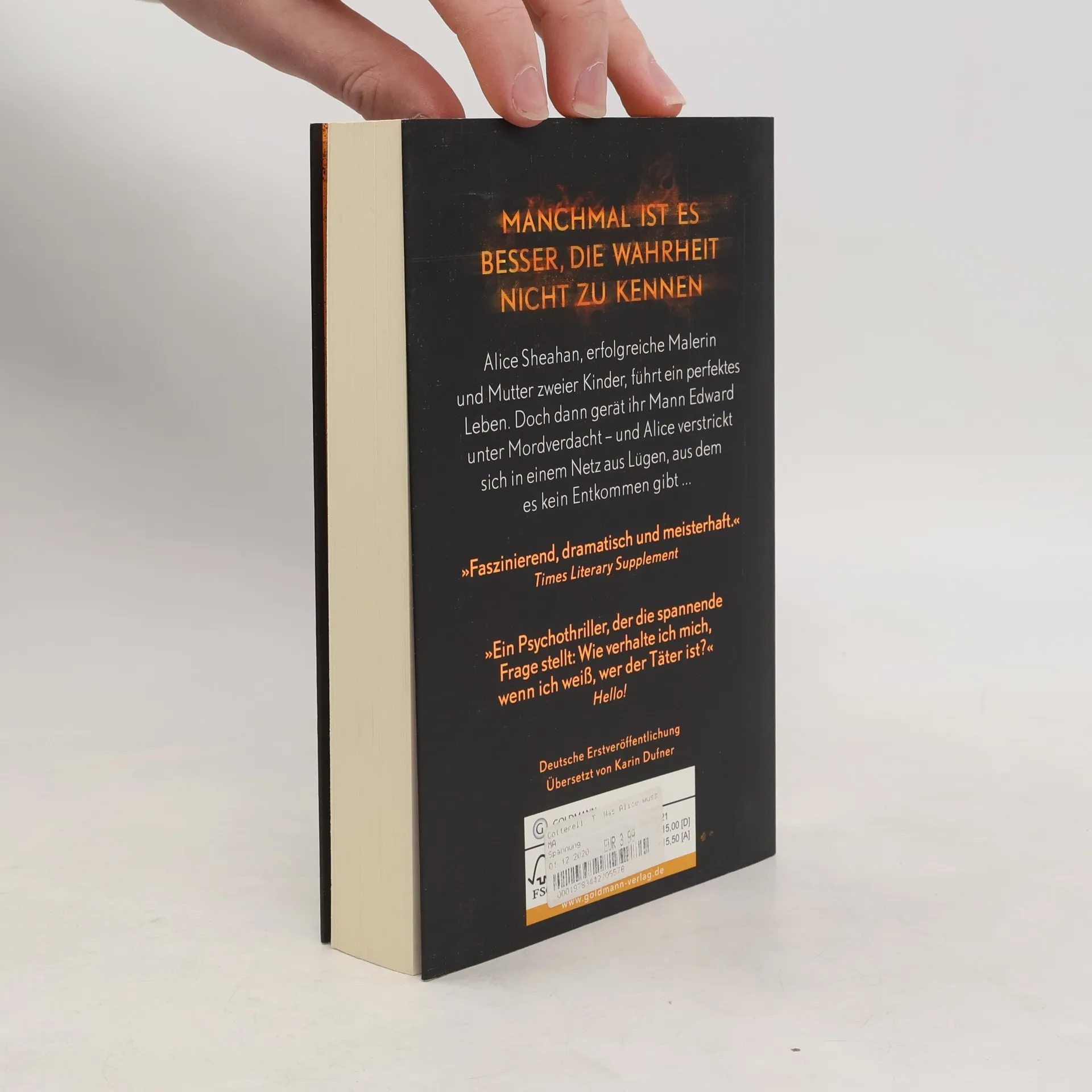Die erfolgreiche Malerin Alice Sheahan lebt mit ihrem Mann Ed, einem angesehenen Arzt, in Bristol. Sie ist stolz auf das nahezu perfekte Leben, das sie führen, bis ihre Welt auseinanderbricht: Ed gerät nach einer durchzechten Nacht in den Verdacht, eine junge Frau ermordet zu haben. Doch obwohl Alice ein blaues Seidenhalsband in seiner Jacketttasche entdeckt, beteuert Ed seine Unschuld. Dann taucht plötzlich Marianne auf, eine ehemalige Freundin von Alice, zu der sie keinen Kontakt mehr hatte. Sie zeigt Alice ein Foto, das Eds Version der Mordnacht als Unwahrheit entlarvt. Und Alice wird zerrissen in einem gefährlichen psychologischen Spiel, das sie schließlich einen fatalen Fehler begehen lässt …