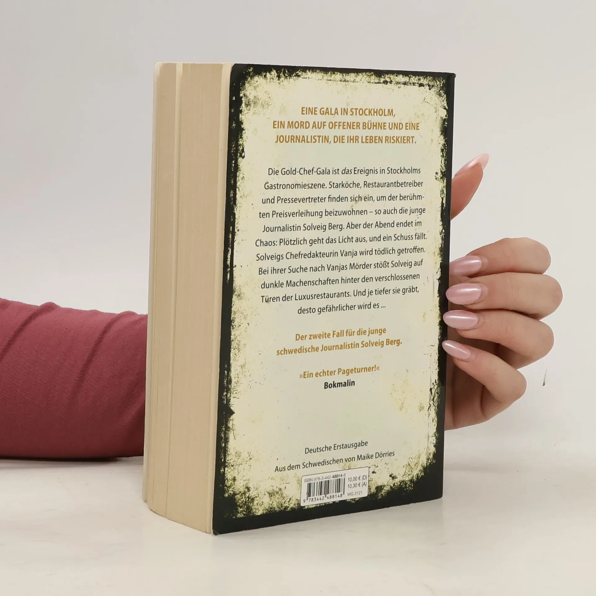 Die Gold-Chef-Gala ist das Ereignis in Stockholms Gastronomie-Szene. Starköche, Restaurantbetreiber und Pressevertreter finden sich ein, um der berühmten Preisverleihung beizuwohnen – so auch die junge Journalistin Solveig Berg. Aber der Abend endet im Chaos: Plötzlich geht das Licht aus, ein Schuss fällt. Solveigs Chefredakteurin Vanja wird tödlich getroffen. Bei ihrer Suche nach Vanjas Mörder stößt Solveig auf dunkle Machenschaften hinter den verschlossenen Türen der Luxusrestaurants. Und je tiefer sie gräbt, desto gefährlicher wird es ...