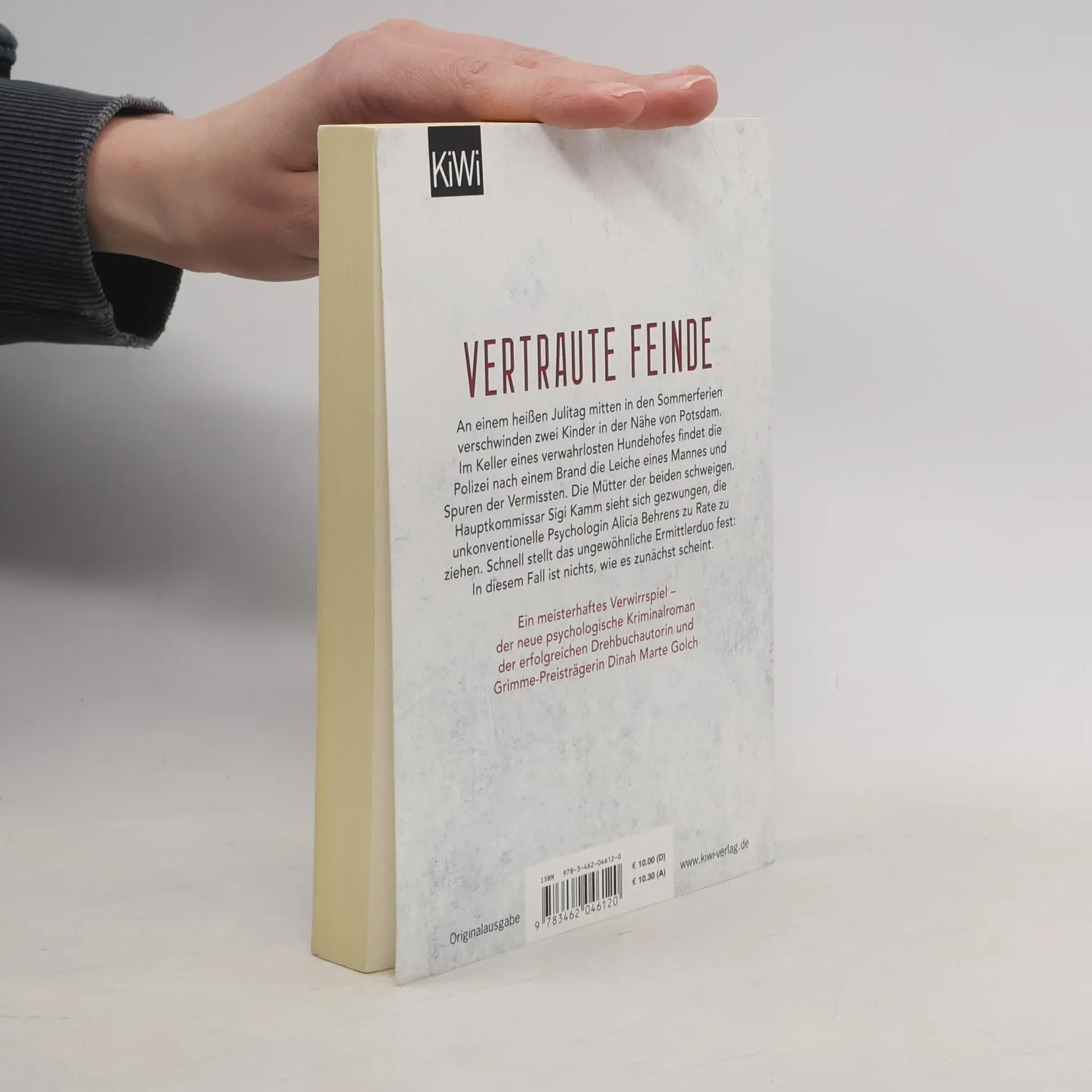 Die vertrauten Feinde. An einem heißen Julitag mitten in den Sommerferien verschwinden zwei Kinder beim Spielen im Wald. Kurz darauf stirbt ein Mann in den Flammen seines verwahrlosten Hundehofs. Im Keller: Spuren der Vermissten. Der sonst so forsche Potsdamer Hauptkommissar Sigi Kamm steht vor einem Rätsel: Warum schweigen die beiden Mütter der verschwundenen Kinder? Er zieht die Psychologin Alicia Behrens zu Rate, die für ihre unkonventionellen Behandlungsmethoden bekannt ist. Schon bald fliegen zwischen ihnen die Fetzen und die Funken. Und je näher sie der Lösung des Falles kommen, desto mehr verschwimmen die Grenzen zwischen Gut und Böse, Schuld und Unschuld, zwischen Freunden und Feinden, Wahrheit und Lüge. Die erfolgreiche Drehbuchautorin und Grimme-Preisträgerin Dinah Marte Golch spielt in diesem hochspannenden und klug komponierten Fall gekonnt mit den Erwartungen der Leser – ein rasantes Verwirrspiel und ein psychologischer Krimi der Extraklasse!