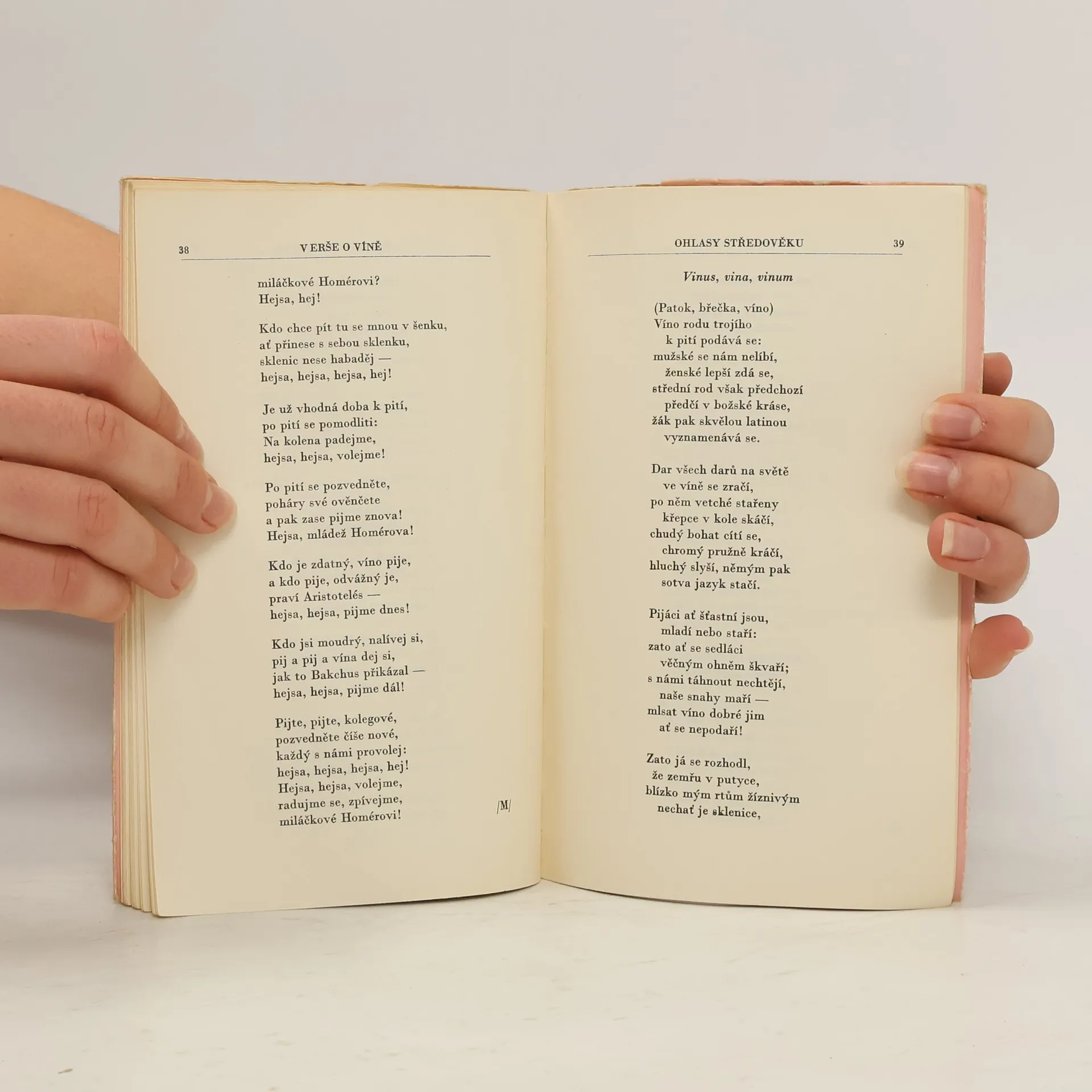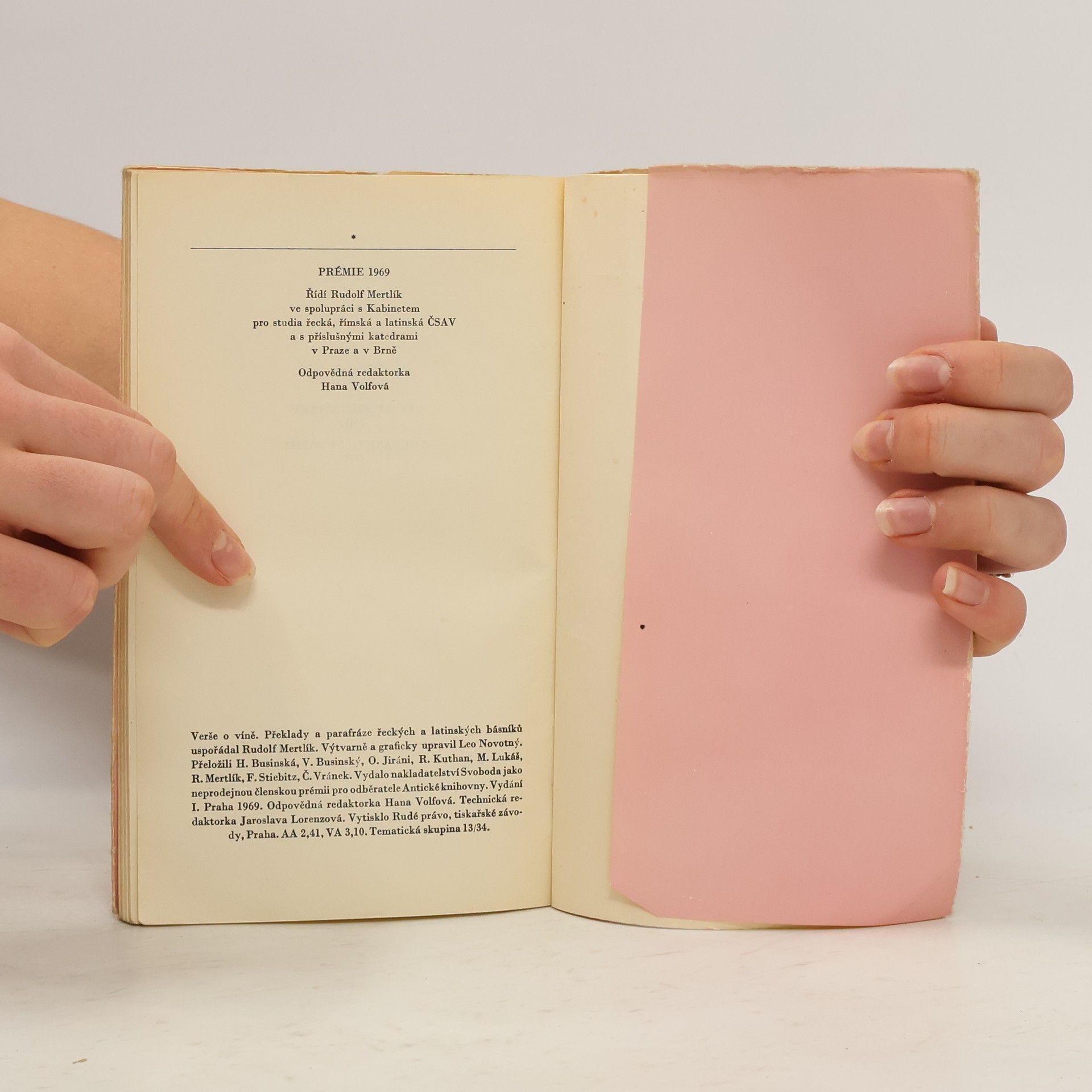 Členská prémie Antické knihovny. Výbor obsahuje verše o víně z antiky, středověku a humanistické poesie. Překlady a parafráze řeckých a latinských básníků uspoř. Rudolf Mertlík, přel. H. Businská. Veršovaný hold vínu a s ním i všemu ostatnímu, co náleží k lidským radovánkám– veselí, jídlu, hudbě, přátelství, lásce a ženám – je vzdáván poezií, vybranou z pramenů antických, středověkých i humanistických. O věčnosti této inspirace hovoří i závěrečná ukázka z veršů řeckého básníka přelomu 18. a 19. věku A. Christopula, jež se názorově plně shoduje i s úvodním zpěvem Homérovým. Zdroje, z nichž byly verše vybrány, jsou: Homér, Archilochos, Xenofanés, Ión, Theognis, Horatius, římské nápisy, Antologie palatinská, anakreontské zpěvy, anonymní autoři středověcí a z humanistického období Traianus, Pontanus, Chorinnus, Jizbický, Mnichovský rukopis z 15. století, Jan Orpheus a B. Hasištejnský z Lobkovic.