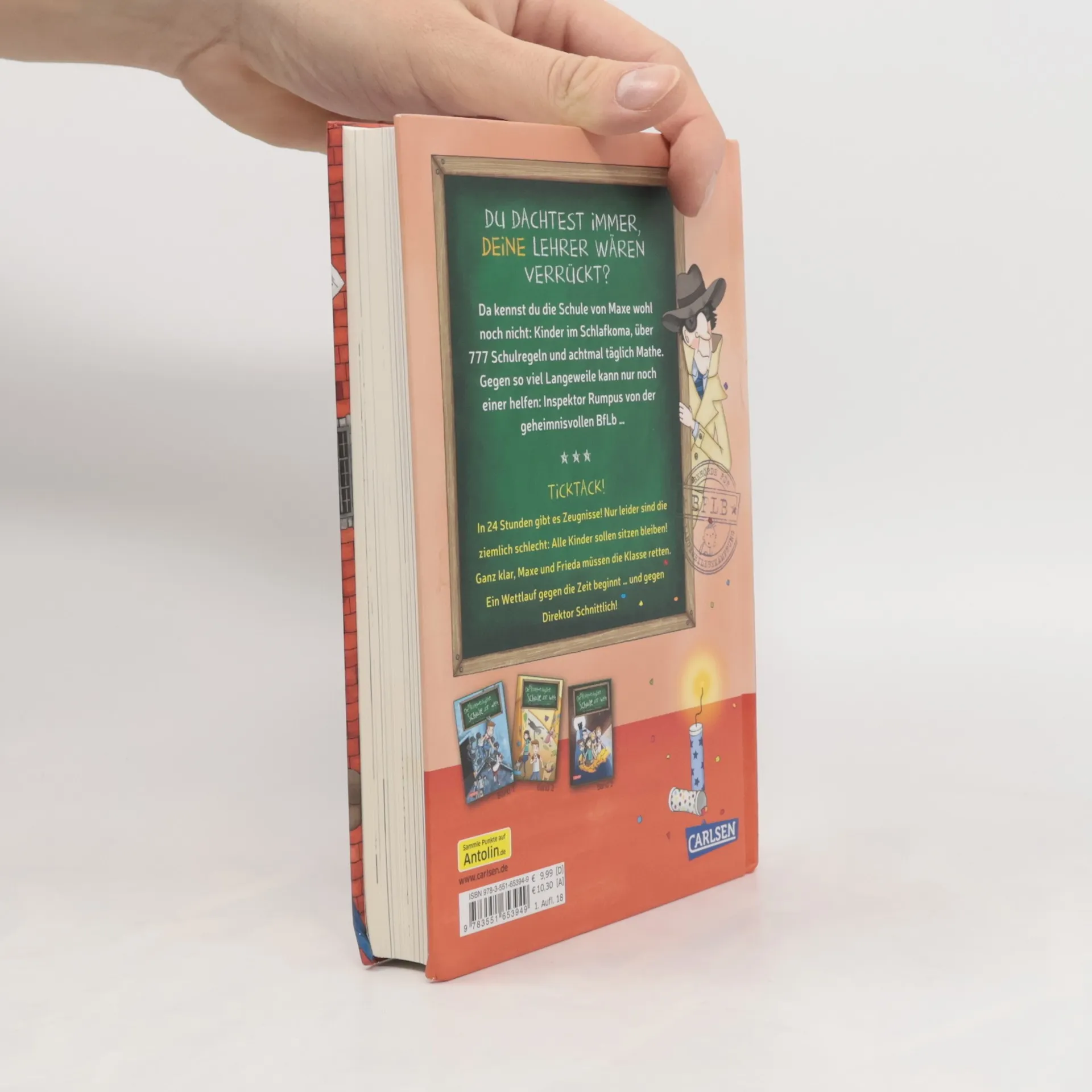 *** „Bitte leise atmen!“ heißt es für Maxe, Frieda und ihre Klasse in der langweiligsten Schule der Welt. Ein Fall für Inspektor Rasputin Rumpus von der Behörde für Langeweilebekämpfung! *** BAND 4: TICKTACK! In 24 Stunden gibt es Zeugnisse! Nur leider sind die ziemlich schlecht: Alle Kinder sollen sitzen bleiben! Ganz klar, Maxe und Frieda müssen die Klasse retten. Ein Wettlauf gegen die Zeit beginnt … und gegen Direktor Schnittlich! *** DIE UNLANGWEILIGSTE SCHULE DER WELT: Du dachtest immer, deine Schule wäre langweilig? Da kennst du die Schule von Maxe wohl noch nicht: Kinder im Schlafkoma, über 777 Schulregeln und achtmal täglich Mathe. Gegen so viel Langeweile kann nur noch einer helfen: Inspektor Rumpus von der geheimnisvollen BfLb … *** Eine witzige, turbulente Reihe für Jungs und Mädchen ab 8 Jahren! Lustige Schulgeschichten plus Agenten-Spannung plus viele Bilder = Lesespaß pur! *** Kurze Kapitel und viele Bilder machen das Lesenlernen leichter!*** „Dieses ungewöhnlich geschriebene und ebenso illustrierte Buch ... bringt einen Heidenspaß und ist im Nu verschlungen.“ (Der evangelische Buchberater) ***