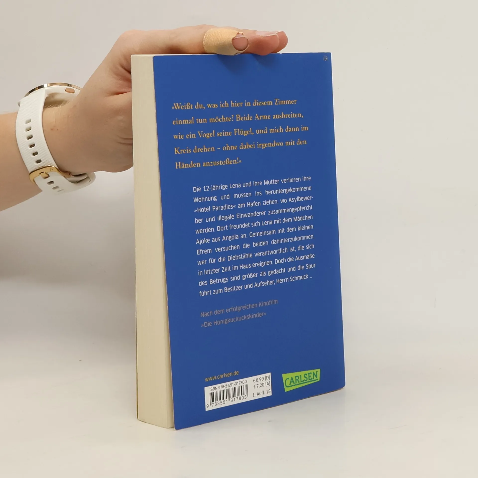 Ein Krimi für Kinder, der viele wichtige Themen anspricht Die zwölfjährige Lena und ihre Mutter verlieren ihre Wohnung und müssen ins heruntergekommene »Hotel Paradies« am Hafen ziehen, wo Asylbewerber und Obdachlose zusammengepfercht werden. Dort freundet sich Lena mit dem Mädchen Ajoke aus Angola an. Gemeinsam mit dem kleinen Efrem versuchen die beiden dahinterzukommen, wer für die Diebstähle verantwortlich ist, die sich in letzter Zeit im Haus ereignen. Doch die Ausmaße des Betrugs sind größer als gedacht und die Spur führt zum Besitzer und Aufseher, Herrn Schmuck … Basierend auf dem gleichnamigen Kinofilm, erzählt Erfolgsautor Andreas Steinhöfel („Rico, Oskar und die Tieferschatten“) nicht nur eine fesselnde Kriminalgeschichte , sondern bereitet wichtige Fragen kindgerecht auf. Sein Buch erzählt davon, wie schnell man den Boden unter den Füßen verlieren kann und was es bedeutet, von Armut betroffen zu sein. Wie es sich anfühlt, als Fremde*r behandelt zu werden, und wie wir Vorurteile überwinden können. Von Freundschaft, Zusammenhalt und Außenseitertum. Und bei aller Relevanz und Aktualität ist „Honigkuckuckskinder“ auch ein wunderbar unterhaltsamer Roman für Groß und Klein, der Themen wie den politischen und gesellschaftlichen Umgang mit Geflüchteten wie nebenbei miterzählt. Unbedingt lesenswert!