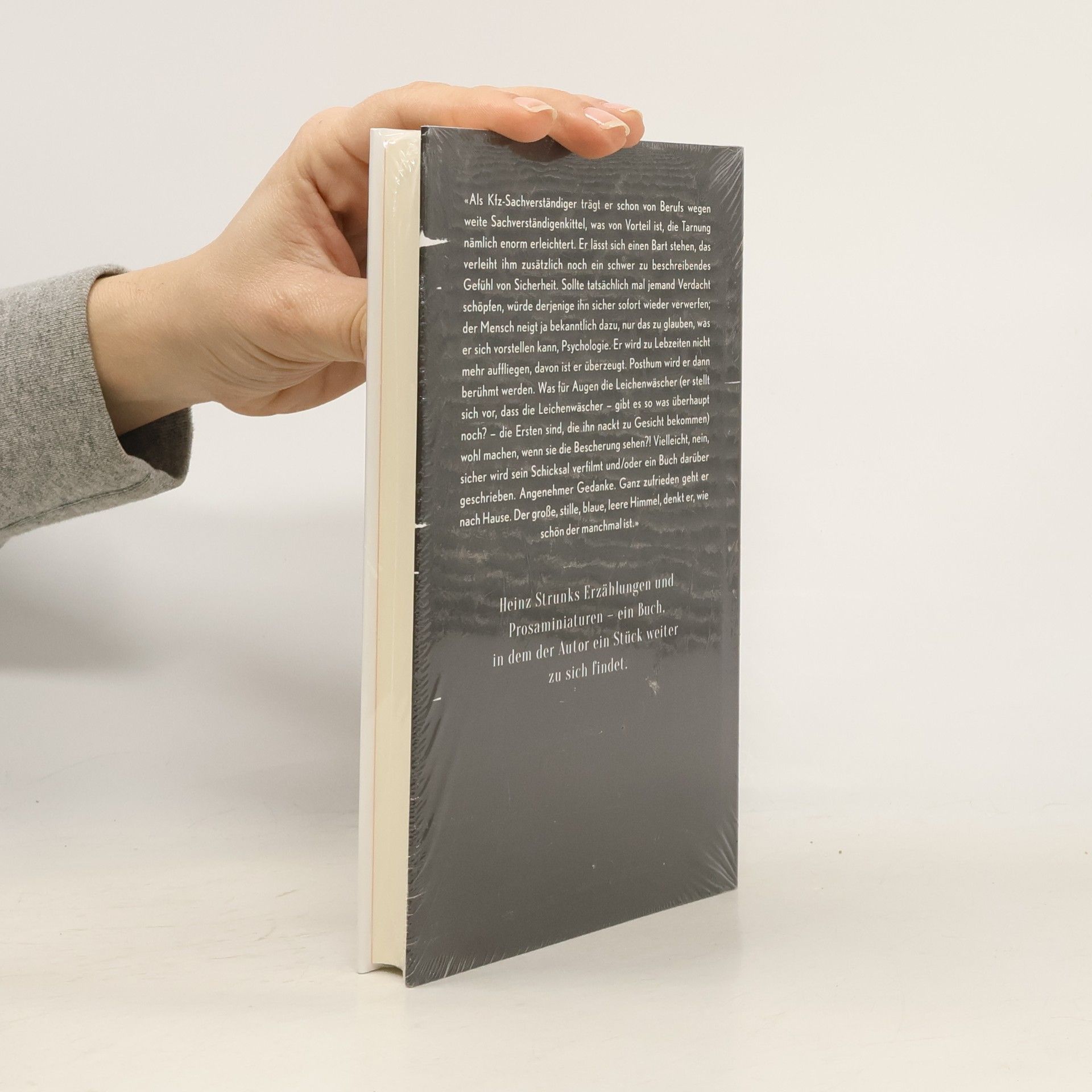 Heinz Strunks Geschichten. Lange, kurze, ganz kurze. Zum Teil knüpfen sie an bekannte Strunk’sche Themenwelten an, Einsamkeit, Sexualnot, Körperverfall, Alkohol, Übergewicht. Sie sind aber anders geschrieben als Strunks vorherige Bücher: immer pointiert, aber oft nicht komisch, manchmal absonderlich, traumlogisch, düster, grotesk, so zum Beispiel die Geschichte von dem DDR-Bürger, der durch politische Verfolgung so gebrochen wird, dass er die Wende als perfides Zersetzungsmanöver des Regimes missversteht und seine graue Zonenwohnung nie mehr verlässt. In anderen Stücken verabreden sich Kleinwagen zum Aufstand gegen die Menschen, erlebt Axl Rose von Guns n' Roses auf dem Hamburger Kiez seine Höllenfahrt, verwandelt sich eine Schönheitskönigin durch Arbeit im Schnellimbiss in eine alte Vettel, wird ein Mann an der Autobahn auf einem Windrad gekreuzigt, gerät eine Wilhelm-Busch-Expertin im Radio komplett aus der Fassung. Vor einigen Jahren hat Heinz Strunk eine Sammlung mit Erzählungen von Botho Strauss herausgegeben; die kurze Form liegt ihm am Herzen. Dies ist mithin kein Nebenwerk, keine Sammlung von Gelegenheitstexten, sondern ein Buch, in dem Heinz Strunk als Autor wieder ein Stück weiter zu sich kommt.