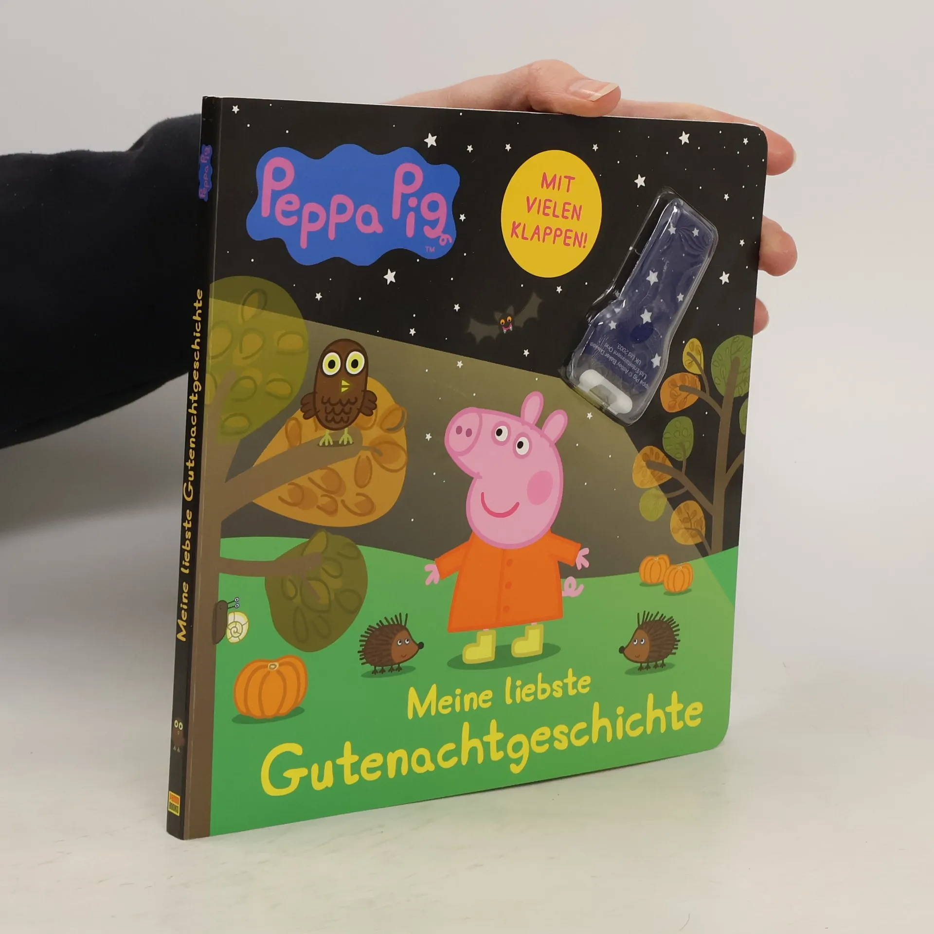 Was raschelt denn da im Laub? Begleite Peppa und ihren Bruder Schorsch auf einem abendlichen Spaziergang durch den Garten und staune, wie viele Tiere abends unterwegs sind. Leuchte mit der beigefügten Taschenlampe hinter die Klappen im Buch und entdecke jede Menge Nachttiere! Und wenn du und Familie Wutz alle Tierchen gefunden habt, wird es Zeit, ins Bett zu gehen. Enthält LED-Taschenlampe mit zwei nicht ersetzbaren CR1220-Knopfzellen