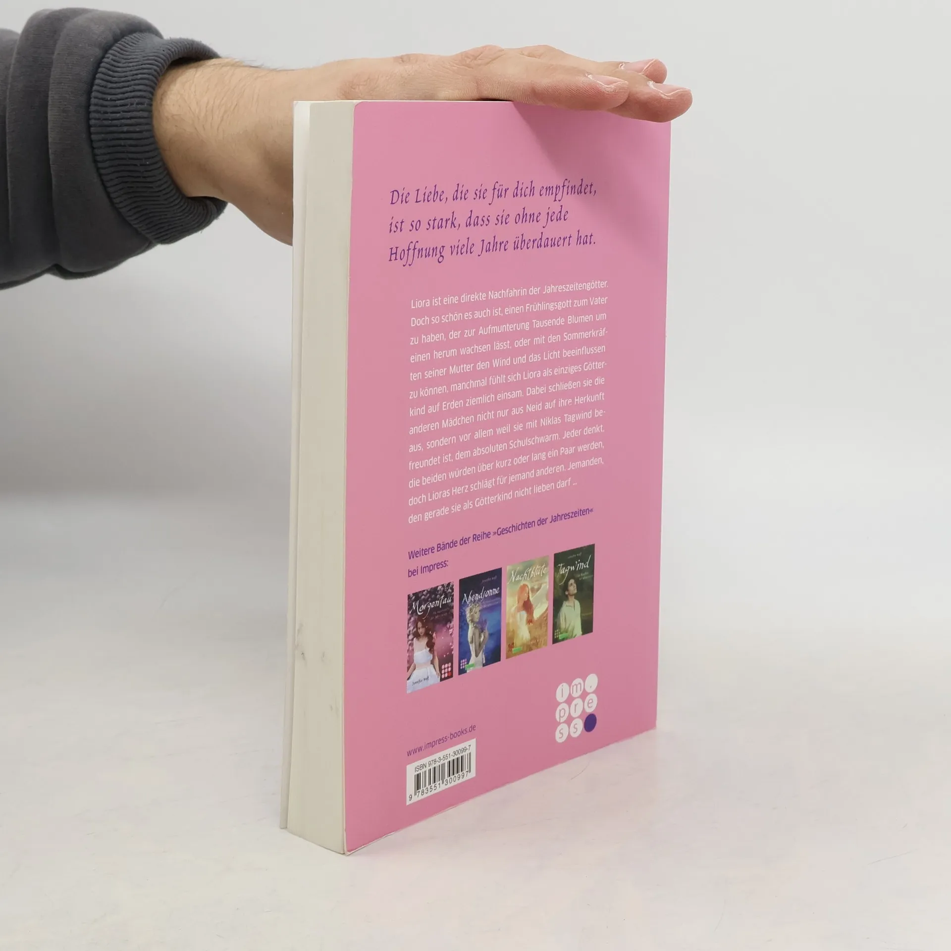 **Der Spin-off zur preisgekrönten Jahreszeiten-Reihe!** Liora Vivian Götterkind ist eine direkte Nachfahrin der Jahreszeitengötter. Doch so schön es auch ist, einen Frühlingsgott zum Vater zu haben, der zur Aufmunterung Tausende Blumen um einen herum wachsen lässt, oder mit den Sommerkräften seiner Mutter den Wind und das Licht beeinflussen zu können, manchmal fühlt sich Liora als einziges Götterkind auf Erden ziemlich einsam. Dabei schließen sie die anderen Mädchen nicht nur aus Neid auf ihre Herkunft aus, sondern vor allem deswegen, weil sie mit Niklas Tagwind befreundet ist, dem absoluten Schulschwarm. Jeder denkt, dass die beiden über kurz oder lang ein Paar werden würden, doch Lioras Herz schlägt für jemand anderen. Jemanden, den gerade sie als Götterkind nicht lieben darf… //Alle Bände der bittersüßen Bestseller-Reihe: -- Morgentau. Die Auserwählte der Jahreszeiten (Buch 1) -- Abendsonne. Die Wiedererwählte der Jahreszeiten (Buch 2) -- Nachtblüte. Die Erbin der Jahreszeiten (Buch 3) -- Tagwind. Der Bewahrer der Jahreszeiten (Buch 4) -- Göttertochter. Das Kind der Jahreszeiten (Buch 5) -- Göttersohn. Der Nachfahre der Jahreszeiten (Buch 6)// Alle Bände der Reihe haben ein abgeschlossenes Ende und könnenunabhängig voneinander gelesen werden - mit Ausnahme von »Göttersohn«, dessen Geschichte »Tagwind« weiterführt.