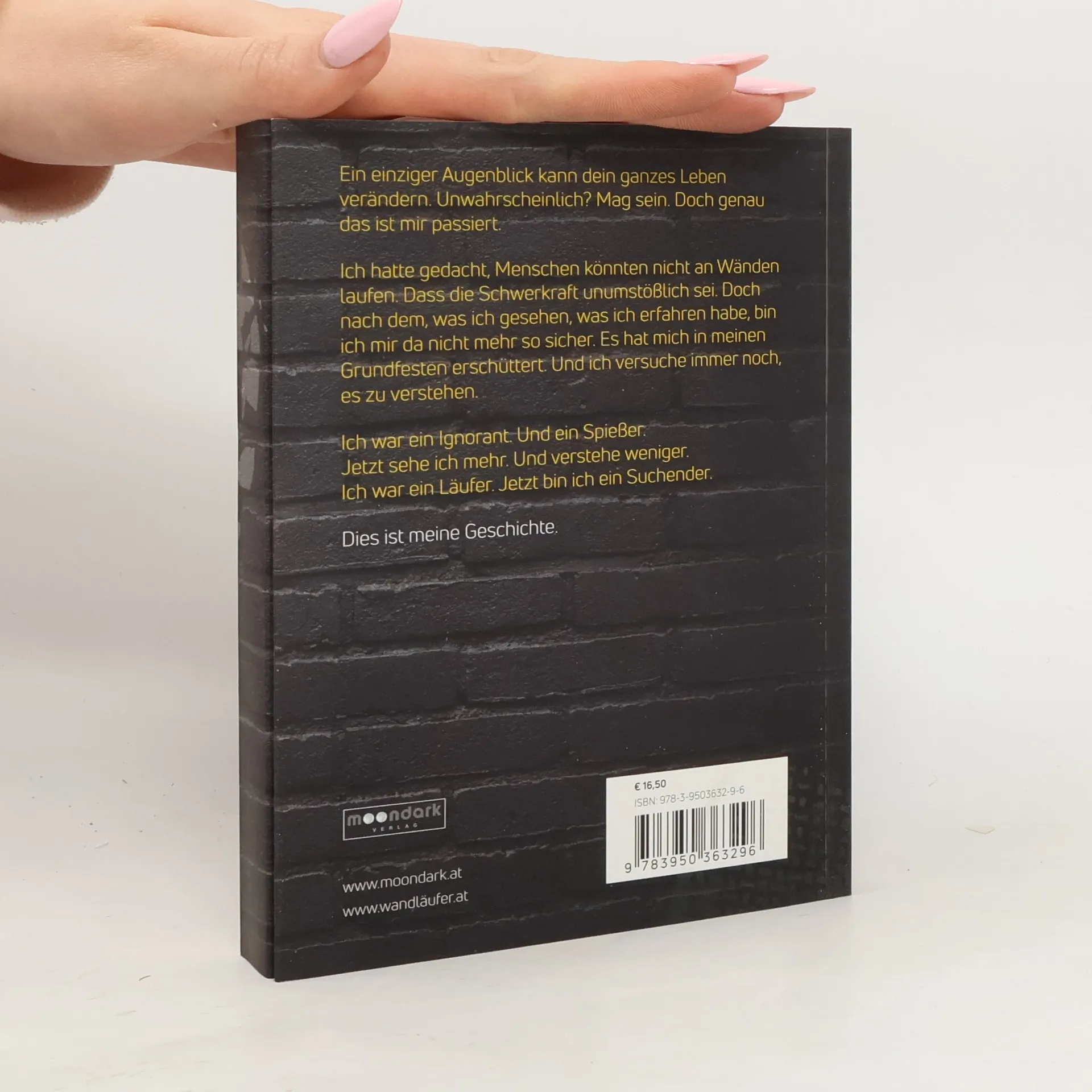 Peter, ein passionierter Läufer, erhält zum 50. Geburtstag eine Reise nach New York. Als er an einem Abend im Central Park läuft, sieht er einen anderen Jogger, der vor seinen Augen auf eine Mauer springt und auf ihr - entgegen allen Gesetzen der Schwerkraft - weiterläuft. Den Rest seines Urlaubs verbringt Peter – ein durch und durch rationaler Mensch – damit, das Gesehene zu verstehen. Und natürlich setzt er alles daran, diesen mysteriösen Wandläufer zu finden und ihm sein Geheimnis zu entlocken …