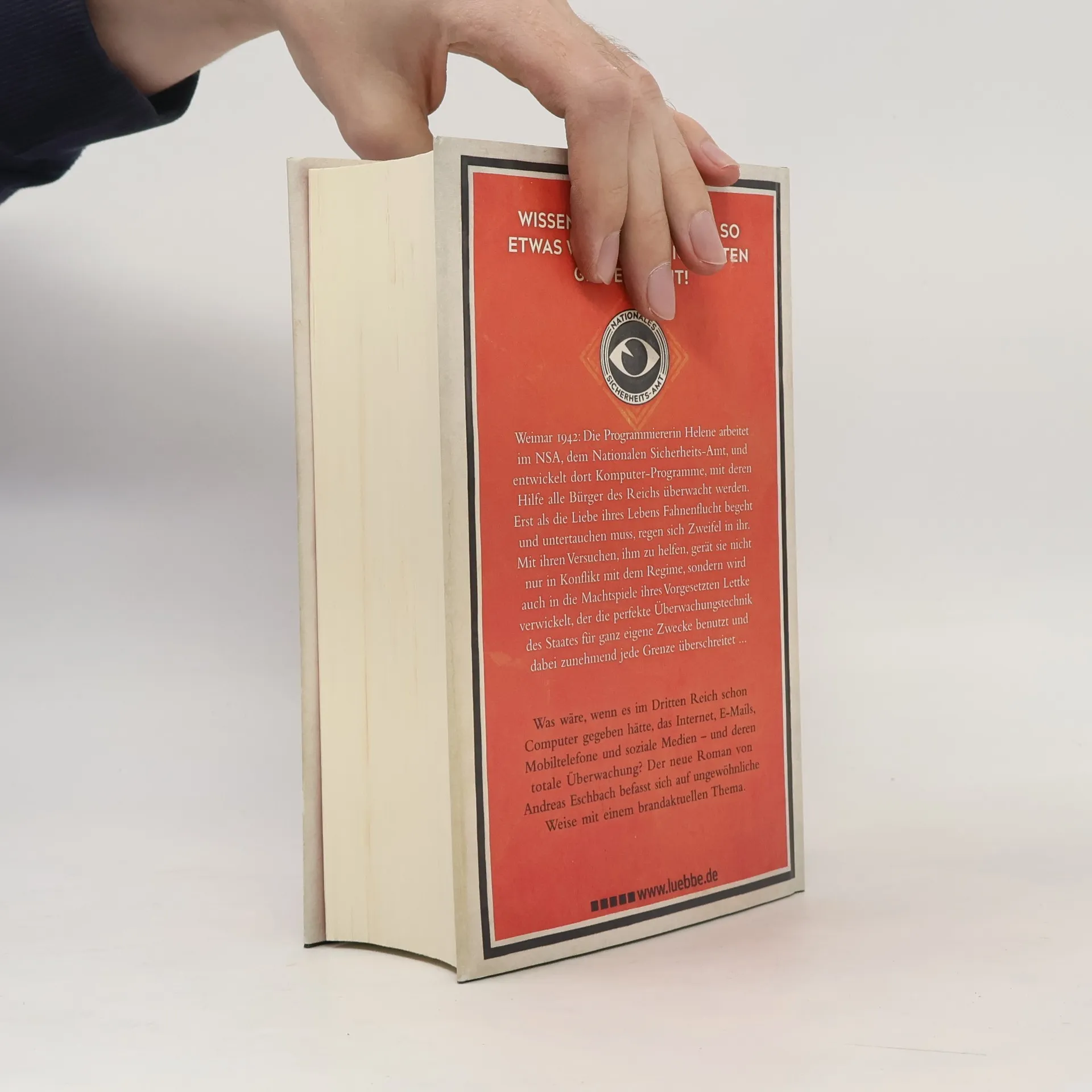 Weimar 1942: Die Programmiererin Helene arbeitet im Nationalen Sicherheits-Amt und entwickelt dort Programme, mit deren Hilfe alle Bürger des Reichs überwacht werden. Erst als die Liebe ihres Lebens Fahnenflucht begeht und untertauchen muss, regen sich Zweifel in ihr. Mit ihren Versuchen, ihm zu helfen, gerät sie nicht nur in Konflikt mit dem Regime, sondern wird auch in die Machtspiele ihres Vorgesetzten Lettke verwickelt, der die perfekte Überwachungstechnik des Staates für ganz eigene Zwecke benutzt und dabei zunehmend jede Grenze überschreitet ... Was wäre, wenn es im Dritten Reich schon Computer gegeben hätte, das Internet, E-Mails, Mobiltelefone und soziale Medien - und deren totale Überwachung?