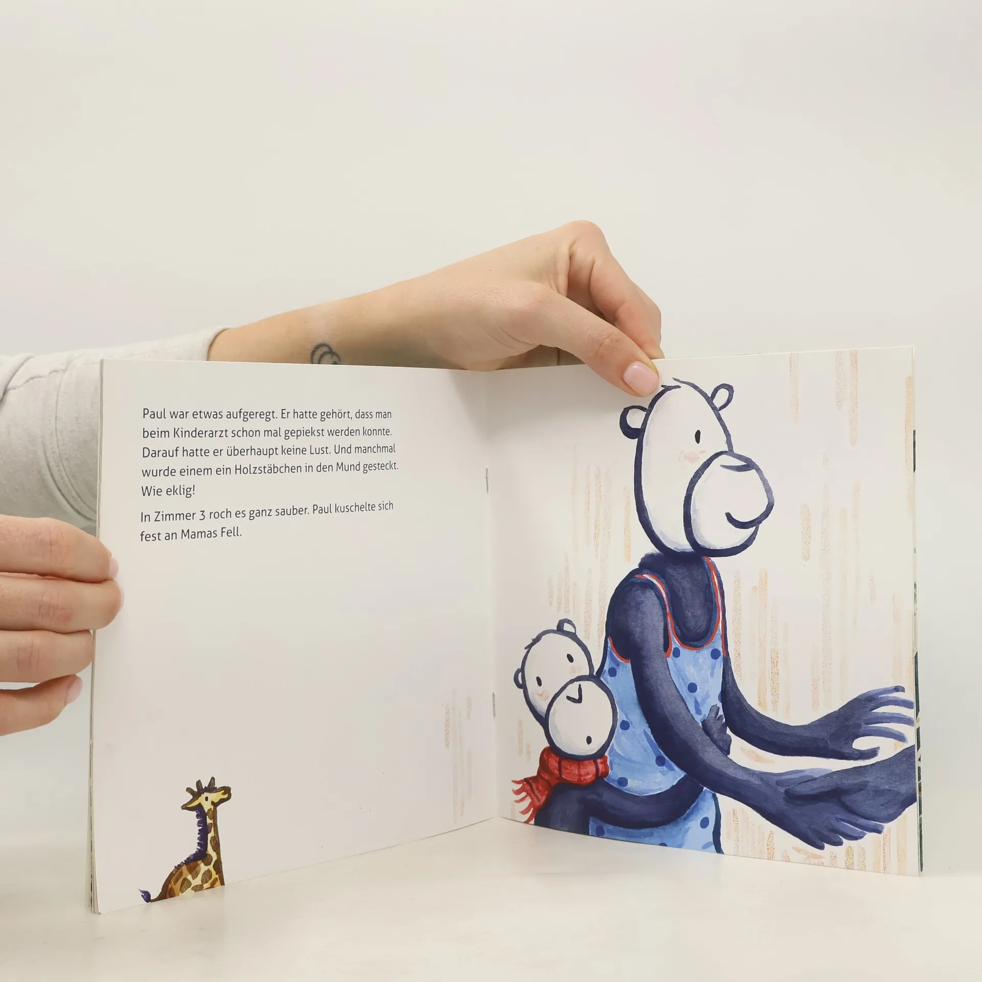 Der kleine Affenjunge Paul ist krank. Bei Dr. Silberbart merkt er, dass ein Besuch beim Kinderarzt trotzdem viel Spaß machen kann.“ In „Paul sagt AAAHHH“ können sich Leser und Vorleser mit kindgerechter Sprache in die Erlebenswelt eines etwa dreijährigen Jungen mit Halsschmerzen und Fieber versetzen. Er fühlt sich nicht wohl und hat Sorge das ihm beim Kinderarzt weh getan wird, er kommt in eine ungewohnte Umgebung. Insgesamt ein Ausnahmezustand für den kleinen Affenjungen Paul. Der Unterschied zu anderen Bücher die sich mit dem Thema Kinderarztbesuch beschäftigen besteht darin, dass sich „Paul sagt AAAHHH“ intensiver und sensibler auf die Beschreibung der wichtigen Details eines gelungenen Untersuchungsablaufes beim Kinderarzt konzentriert. Das Buch endet mit einigen Tipps für einen entspannten Kinderarztbesuch: Kinder die im Vorfeld einer Untersuchung entsprechende Handlungen wie abhören, in die Ohren und den Mund schauen, abtasten spielerisch selbst an ihrem Stofftier oder Ihren Eltern durchgeführt haben, gehen meist deutlich entspannter zum Kinderarzt. Es ist für Kinder außerdem enorm wichtig auch nach der Untersuchung das Erlebte zu verarbeiten. Hierbei kann der Affenjunge Paul mit seiner Geschichte helfen.