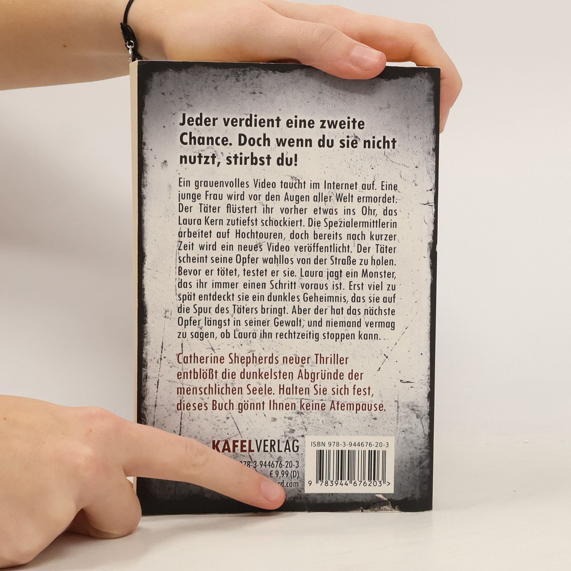 Jeder verdient eine zweite Chance. Doch wenn du sie nicht nutzt, stirbst du! Ein grauenvolles Video taucht im Internet auf. Eine junge Frau wird vor den Augen aller Welt ermordet. Der Täter flüstert ihr vorher etwas ins Ohr, das Laura Kern zutiefst schockiert. Die Spezialermittlerin arbeitet auf Hochtouren, doch bereits nach kurzer Zeit wird ein neues Video veröffentlicht. Der Killer scheint seine Opfer wahllos von der Straße zu holen. Bevor er tötet, testet er sie. Laura jagt ein Monster, das ihr immer einen Schritt voraus ist. Erst viel zu spät entdeckt sie ein dunkles Geheimnis, das sie auf die Spur des Serienmörders bringt. Aber der hat das nächste Opfer längst in seiner Gewalt, und niemand vermag zu sagen, ob Laura ihn rechtzeitig stoppen kann.