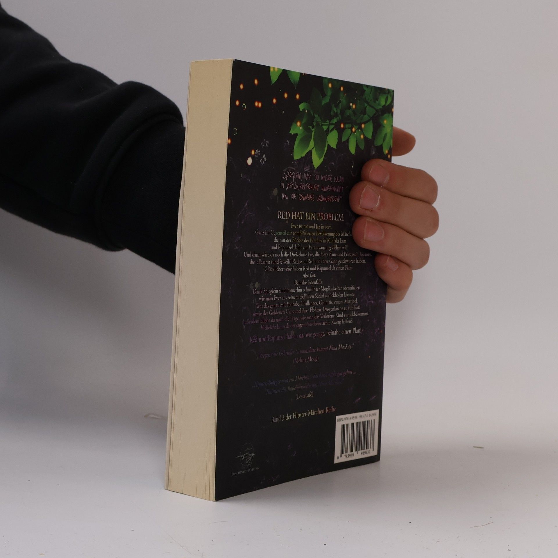 Der 3. Band der Märchen-Hipster-Reihe von Nina MacKay! Red hat ein Problem. Ever ist tot und Jaz ist fort. Ganz im Gegenteil zur zombifizierten Bevölkerung des Märchenwalds, die mit der Büchse der Pandora in Kontakt kamen und Rapunzel dafür zur Verantwortung ziehen wollen. Und dann wäre da noch die Dreizehnte Fee, die Hexe Bane und Prinzessin Jasemin, die allesamt (und jeweils) Rache an Red und ihrer Gang geschworen haben. Glücklicherweise haben Red und Rapunzel da einen Plan. Also fast. Beinahe jedenfalls. Dank Spieglein sind immerhin schnell vier Möglichkeiten identifiziert, wie man Ever aus seinem tödlichen Schlaf zurückholen könnte. Was das genau mit Youtube-Challenges, Genmais, einem Mettigel, sowie der Goldenen Gans und ihrer Flohtox-Drogenküche zu tun hat? Außerdem bliebe da noch die Frage, wie man das Verlorene Kind zurückbekommt. Vielleicht kann da der sagenumwobene achte Zwerg helfen? Red und Rapunzel haben da wie gesagt beinahe einen Plan!