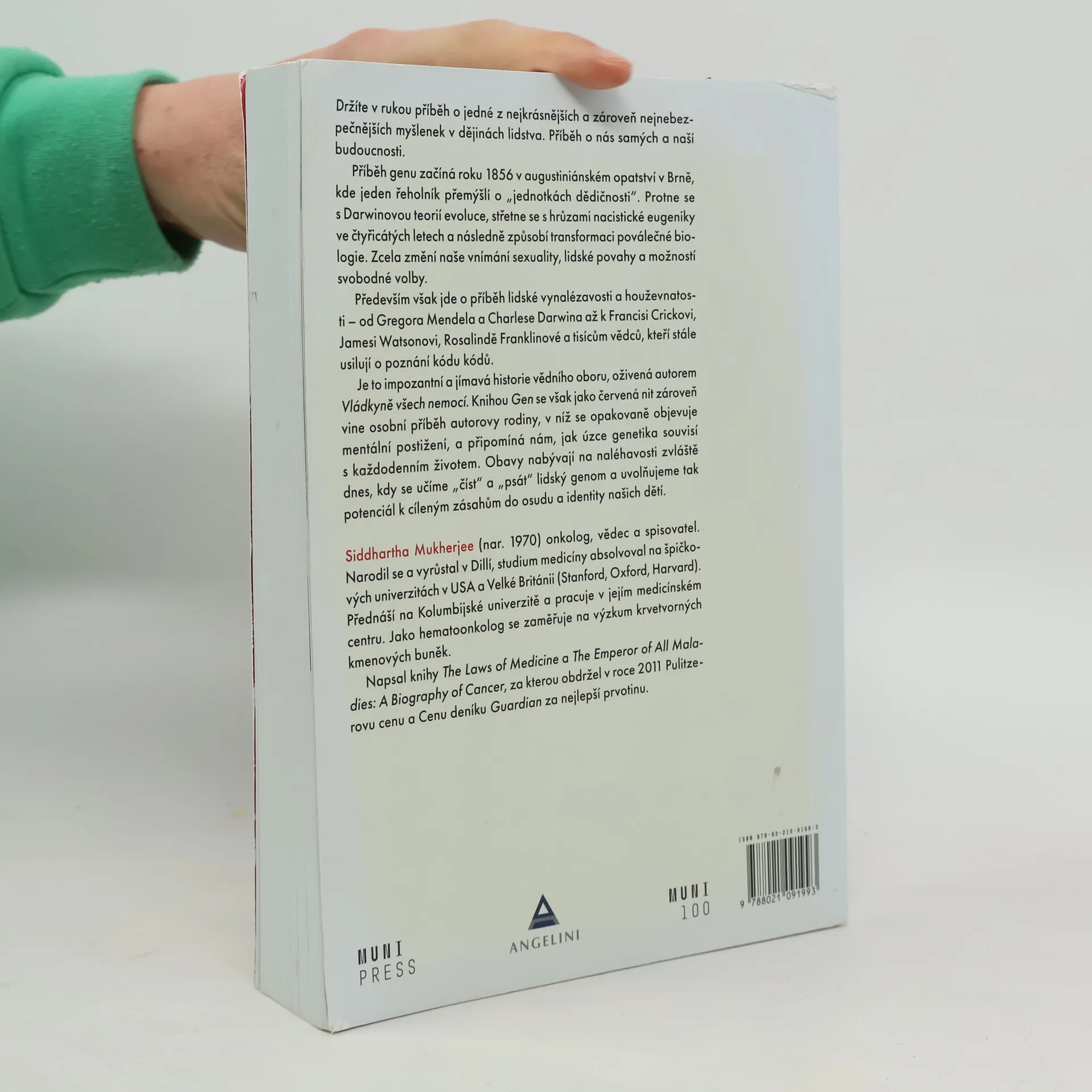 Nakladatelství Munipress věnuje oslavám 100. výročí založení Masarykovy univerzity české vydání mimořádné a oceňované knihy o historii genu – jednotce dědičnosti a biologické informace. Kniha poprvé v úplnosti popisuje zrození a rozvoj vědní disciplíny vzniklé na základě objevů Gregora Mendela a významně se dotýká „živé“ současnosti. Poskytne čtenářům informace o fenoménech souvisejících s genetikou a medicínou, které se objevily v průběhu 19., 20. a 21. století, a také o etických i filozofických aspektech. Díky jedinečnému stylu autora, který je pro něj typický a který uplatnil např. v knize Vládkyně všech nemocí, oceněné Pulitzerovou cenou, je dílo velmi čtivé a přístupné. Překlad Jan Šmarda, jazyková spolupráce Kateřina Danielová.