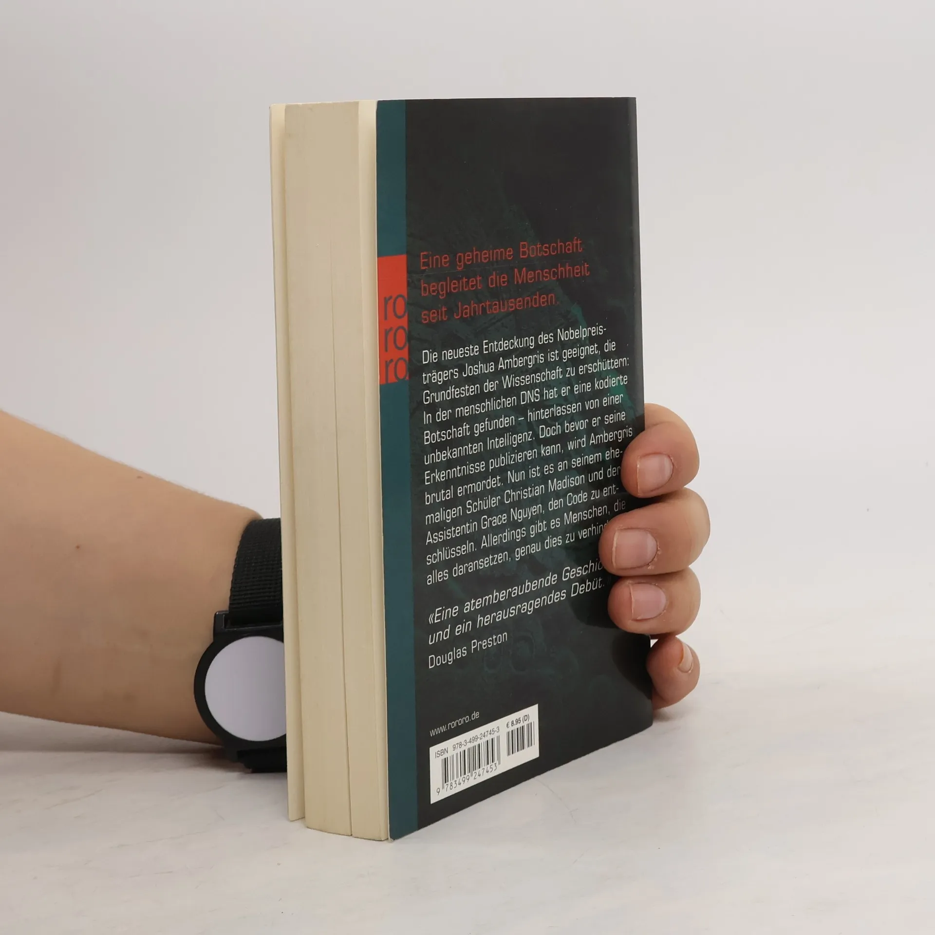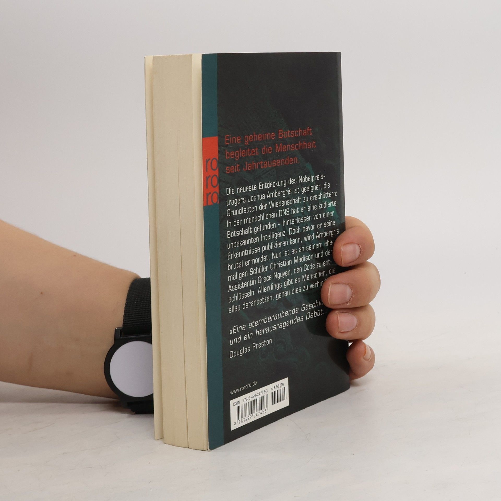 Eine geheime Botschaft begleitet die Menschheit seit Jahrtausenden Die neueste Entdeckung des Nobelpreisträgers Joshua Ambergris ist geeignet, die Grundfesten der Wissenschaft zu erschüttern: In der menschlichen DNS hat er eine kodierte Botschaft gefunden – hinterlassen von einer unbekannten Intelligenz. Doch bevor er seine Erkenntnisse publizieren kann, wird Ambergris brutal ermordet. Nun ist es an seinem ehemaligen Schüler Christian Madison und der Assistentin Grace Nguyen, den Code zu entschlüsseln. Allerdings gibt es Menschen, die alles daran setzen, genau dies zu verhindern … „Eine atemberaubende Geschichte und ein herausragendes Debüt“ (Douglas Preston)