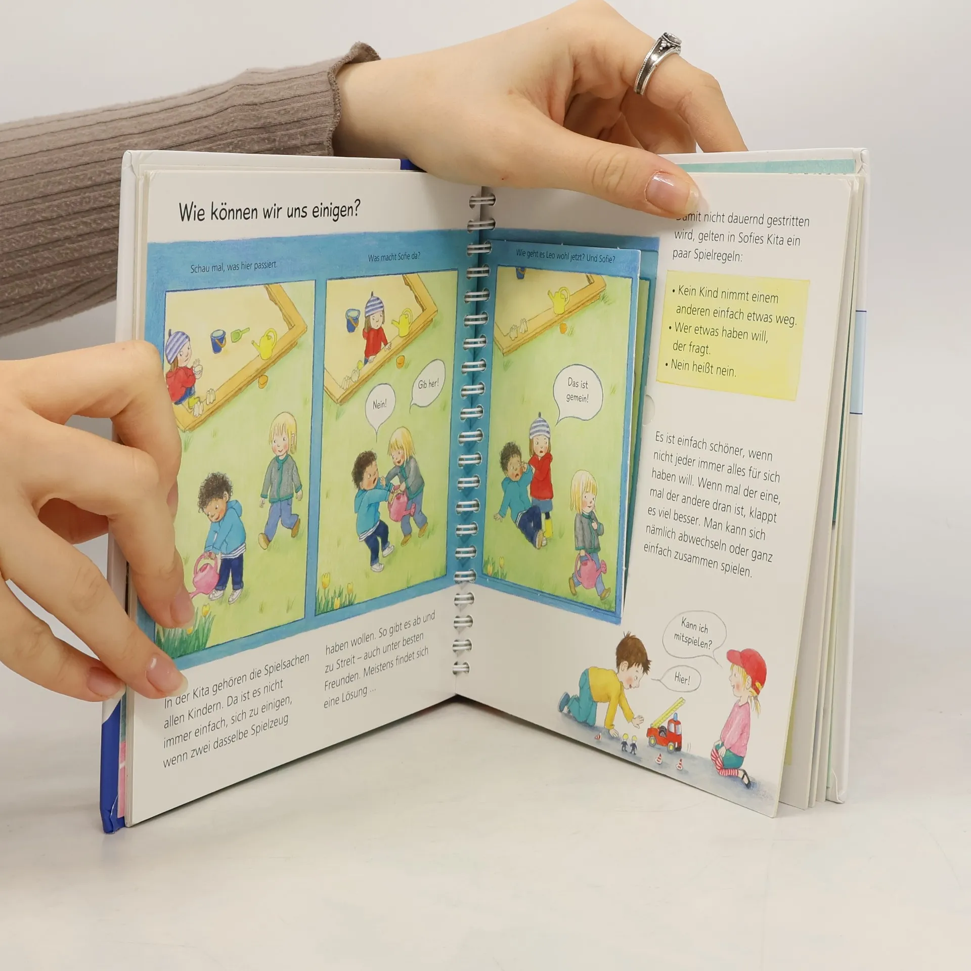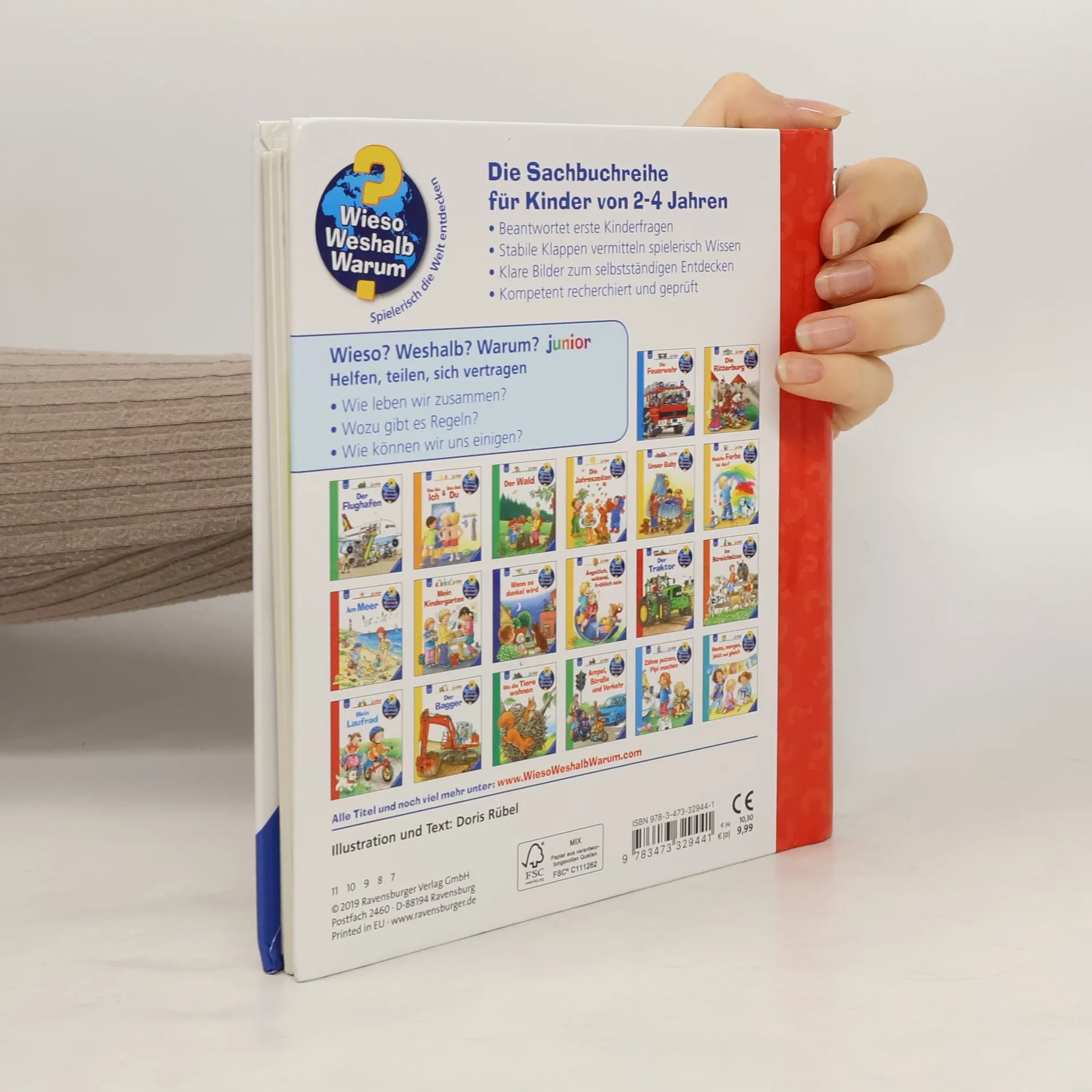 Zu Hause, im Kindergarten, auf dem Spielplatz – fast immer sind wir mit anderen Menschen zusammen. Dieser Band zeigt Kindern anhand vieler Alltagsszenen, wie das Miteinander am besten klappt: zum Beispiel indem wir einander zuhören, aufeinander achten und Rücksicht nehmen, fragen, wenn wir etwas möchten, und uns nicht wehtun. Und wenn es doch einmal zum Streit kommt? Dann haben wir immer die Möglichkeit, uns zu entschuldigen und wieder zu vertragen. Wieso? Weshalb? Warum? junior Die Sachbuchreihe für Kinder von 2-4 Jahren Jeden Tag entdecken Kinder etwas Neues – und haben viele Fragen. Wann kommt die Feuerwehr? Was machen die Tiere im Winter? Warum muss ich Zähne putzen? Die beliebte Sachbuchreihe Wieso? Weshalb? Warum? junior beantwortet die Fragen der Kinder auf Augenhöhe. Sie beleuchtet unterschiedlichste Themen aus ihrer Alltags- und Interessenswelt altersgerecht und mit viel Liebe zum Detail. Die Reihe ist speziell auf kleine Hände und die Bedürfnisse der Kleinsten angepasst. Klare und liebevolle Bilder, kurze Sachtexte sowie handliche Klappen, die Bewegungen veranschaulichen und überraschende und lustige Einblicke gewähren, ermöglichen Kindern, sich ihre Themen selbst zu erschließen. Der Spaß am eigenhändigen Entdecken, die liebevolle Umsetzung und die hochwertige Ausstattung garantieren langanhaltende Freude an jedem Buch.