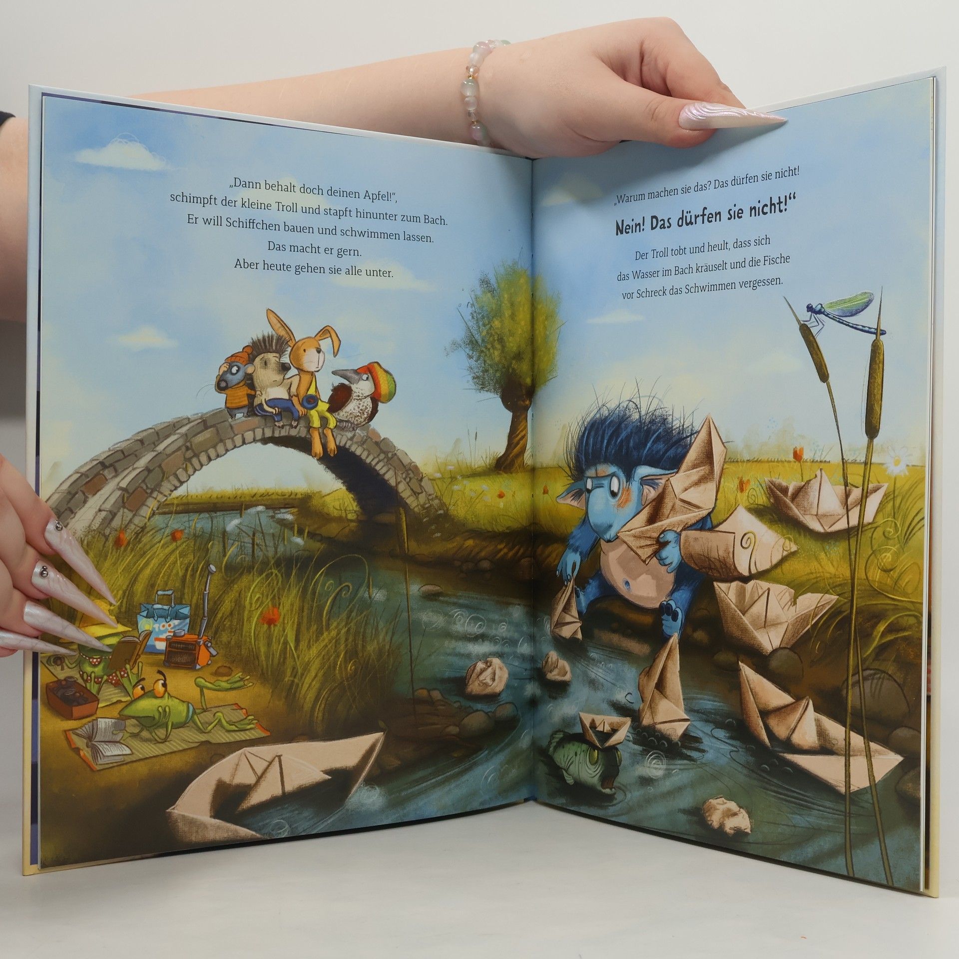Es könnte alles so schön sein! Wäre da nicht die blöde Hütte, die immer wieder zusammenkracht, oder der dumme Baum, von dem einfach kein Apfel herunterfallen will … Den Frust und die Wut, wenn Dinge nicht so laufen, wie man es sich wünscht, kennt jeder. Auch der Grolltroll. Was aber tun, wenn die ganz große Wut kommt und uns einfach überrollt? Das Bilderbuch von aprilkind, Barbara van den Speulhof und Stephan Pricken hilft, ihr spielerisch ein Ende zu setzen.