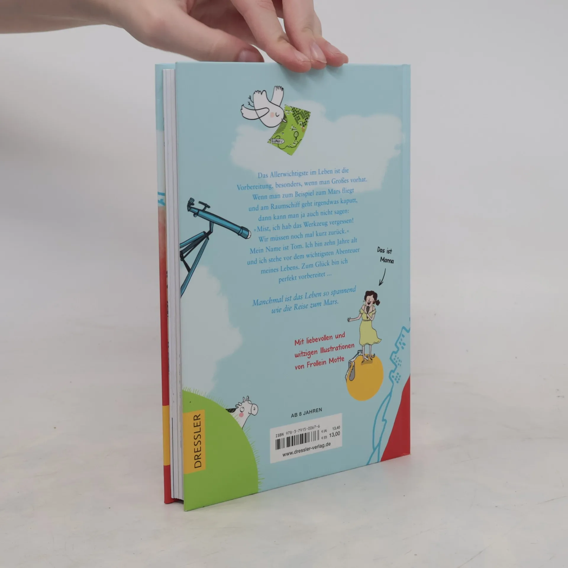 Grüße vom Mars: Eine außerirdische Reise zu Oma und Opa. Tom ist zehn und etwas eigen. Er will unbedingt auf den Mars, sitzt am Tisch nur rechts vom Kopfende und wenn ihm etwas zu viel wird, zieht er seinen Astronautenhelm an. Als seine Mutter nach China muss, soll Tom mit den Geschwistern bei Oma und Opa wohnen. Doch die Großeltern haben den Besuch der Enkel glatt vergessen. Und zu Toms Schrecken besitzen sie nur einen einzigen, runden (!) Esstisch. Da hilft es nur, das Ganze als Vorbereitung auf die Mars-Mission zu sehen. Berührend, witzig und mit viel Leichtigkeit erzählt Für Fans von „Rico, Oskar und die Tieferschatten“ und „Wunder“ Liebevolle Geschichte, mit Witz und Charme illustriert Empfohlen von Stiftung Lesen.