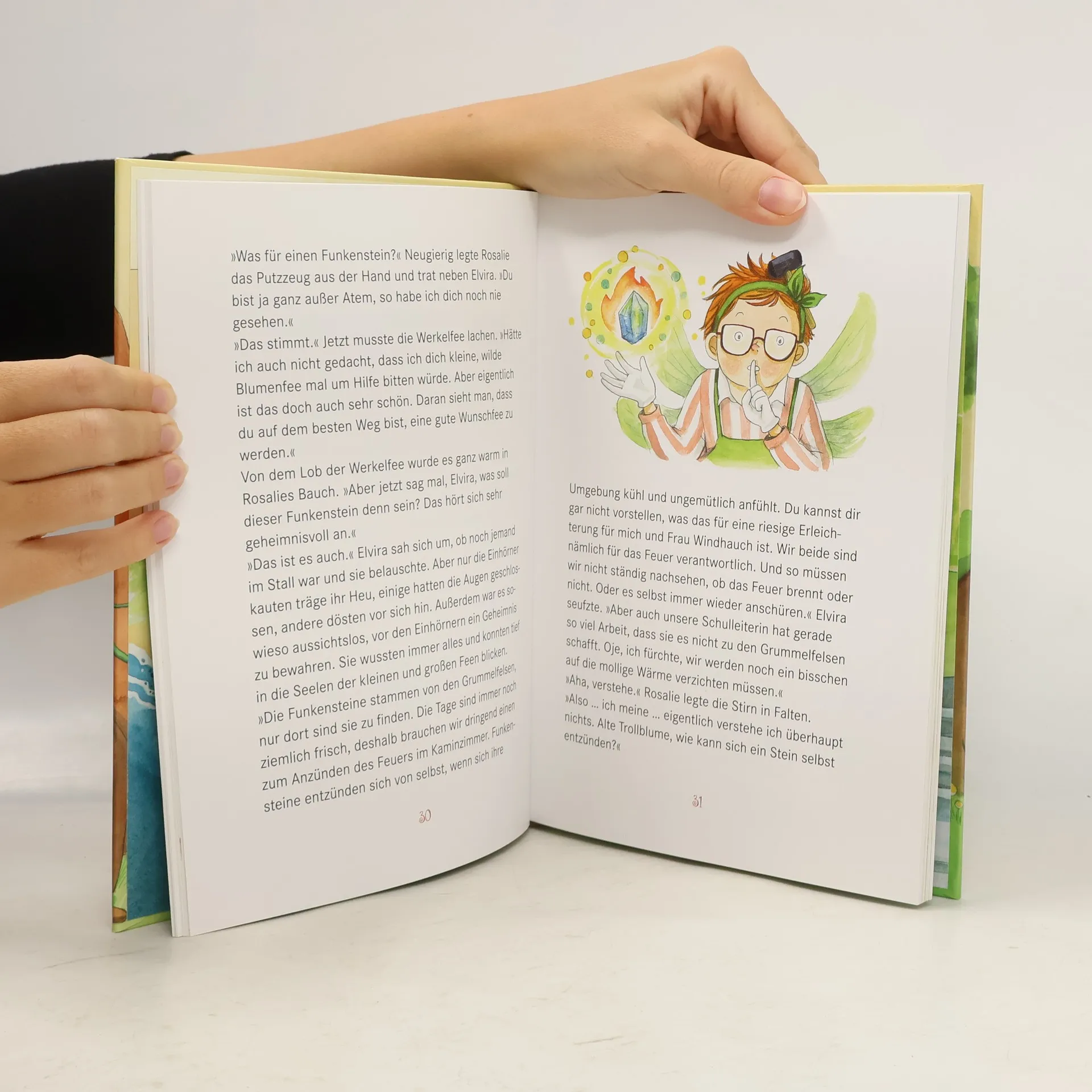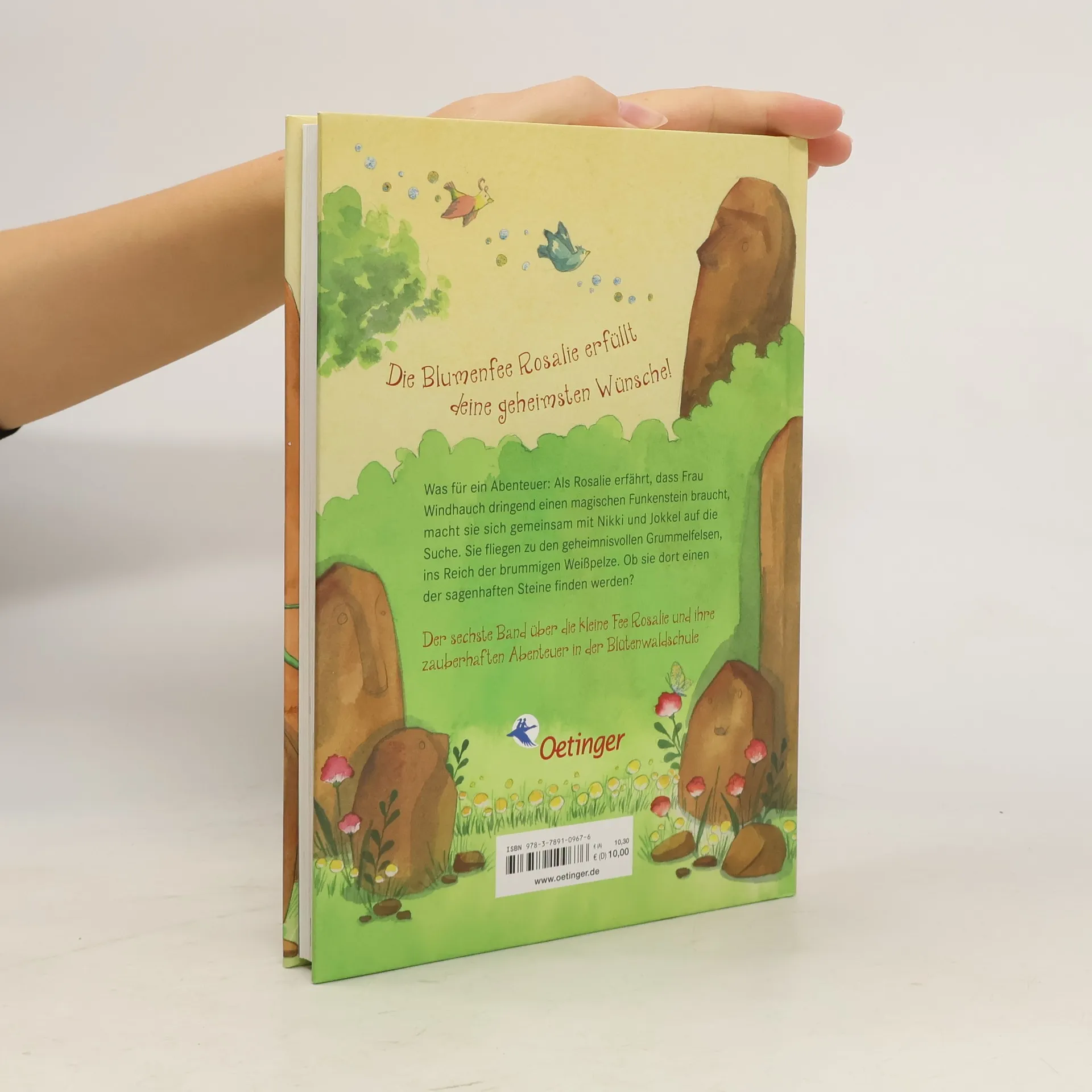 Auf zu den Grummelfelsen! Ein neues Abenteuer mit Rosalie, Nikki und Jokkel. Rosalie macht sich mit Nikki und Jokkel auf zu den Grummelfelsen, um dort einen magischen Funkenstein für das Anzünden des Feuers im Kaminzimmer zu suchen. Doch das ist, wie sich herausstellt, leichter gesagt als getan. Und dann geraten Rosalie und Nikki auf dem Rückweg zur Blütenwaldschule auch noch in die Fänge des Kobolds Warzenknarz. Kann Jokkel sie aus dieser unglücklichen Lage befreien? Autorin Barbara Rose lässt die liebenswerte Fee Rosalie ein echtes Abenteuer erleben, genau richtig für starke Mädchen ab 6 Jahren.
