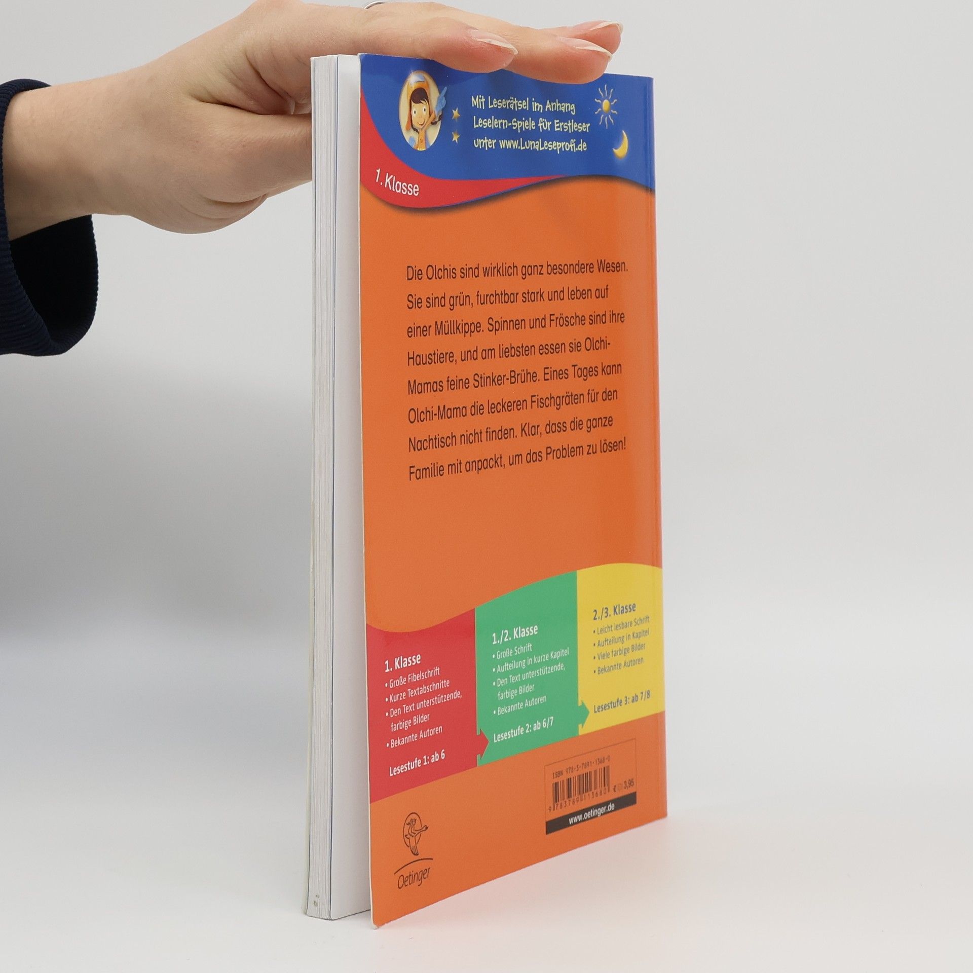 Schleime-Schlamm-und-Käsefuß! Olchi-Leckereien fürs erste Lesen Olchis sind Feinschmecker. Am liebsten essen sie Olchi-Mamas Stinker-Brühe mit Fischgräten-Nachtisch. Doch wo sind die köstlichen Gräten geblieben? Die ganze Olchi-Familie macht sich auf die Suche. Die Lesestarter von Oetinger motivieren auch leseschwache Kinder zum Lesen. Wie? Mit bekannten Autoren, starken Charakteren und populären Themen, die Kinder im Alter von fünf bis zehn Jahren begeistern. Und mit vielen Bildern, Spielen und Leserätseln. So einfach ist Lesenlernen mit den Olchis: Liebenswerte Figuren, einfache Texte, und beliebte Themen motivieren und machen Spaß.