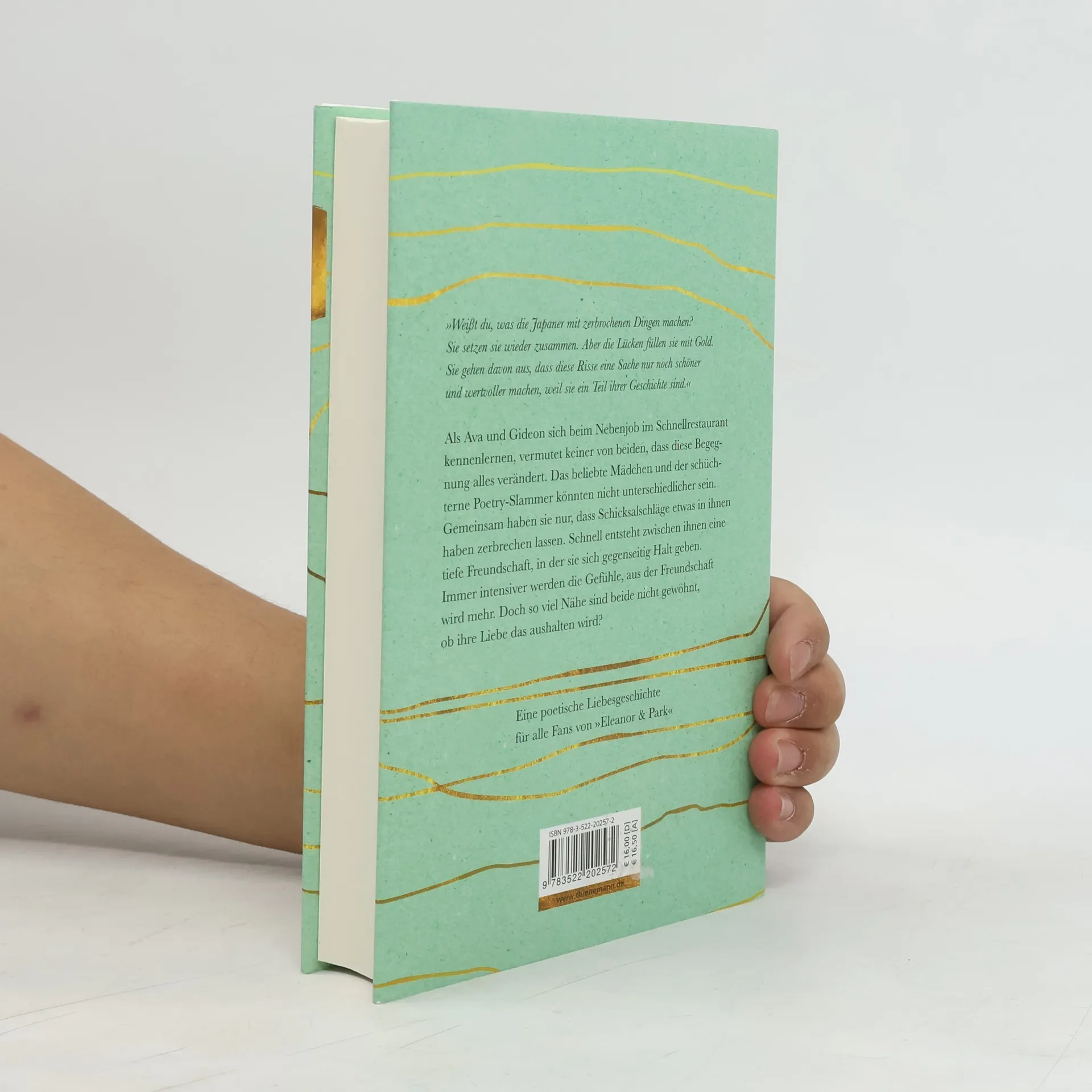Eine poetische Liebesgeschichte für alle Fans von „Eleanor & Park"„Weißt du, was die Japaner mit zerbrochenen Dingen machen? Sie setzen sie wieder zusammen. Aber die Lücken füllen sie mit Gold. Sie gehen davon aus, dass diese Risse eine Sache nur noch schöner und wertvoller machen, weil sie ein Teil ihrer Geschichte sind.“Als Ava und Gideon sich beim Nebenjob im Schnellrestaurant kennenlernen, vermutet keiner von beiden, dass diese Begegnung alles verändert. Das beliebte Mädchen und der schüchterne Poetry-Slammer könnten nicht unterschiedlicher sein. Gemeinsam haben sie nur, dass Schicksalschläge etwas in ihnen haben zerbrechen lassen. Schnell entsteht zwischen ihnen eine tiefe Freundschaft, in der sie sich gegenseitig Halt geben. Immer intensiver werden die Gefühle, aus der Freundschaft wird mehr. Doch so viel Nähe sind beide nicht gewöhnt, ob ihre Liebe das aushalten wird?