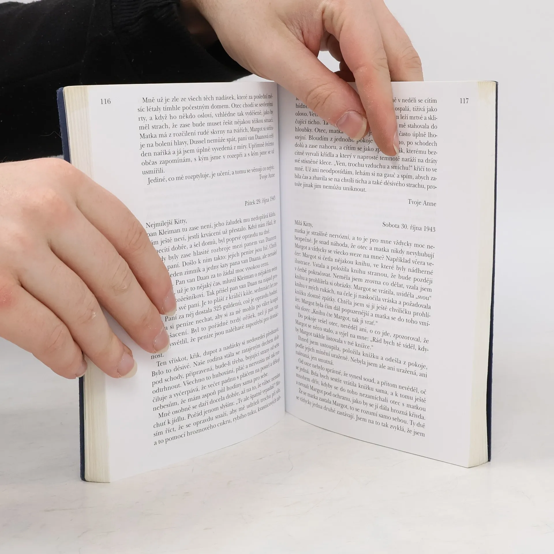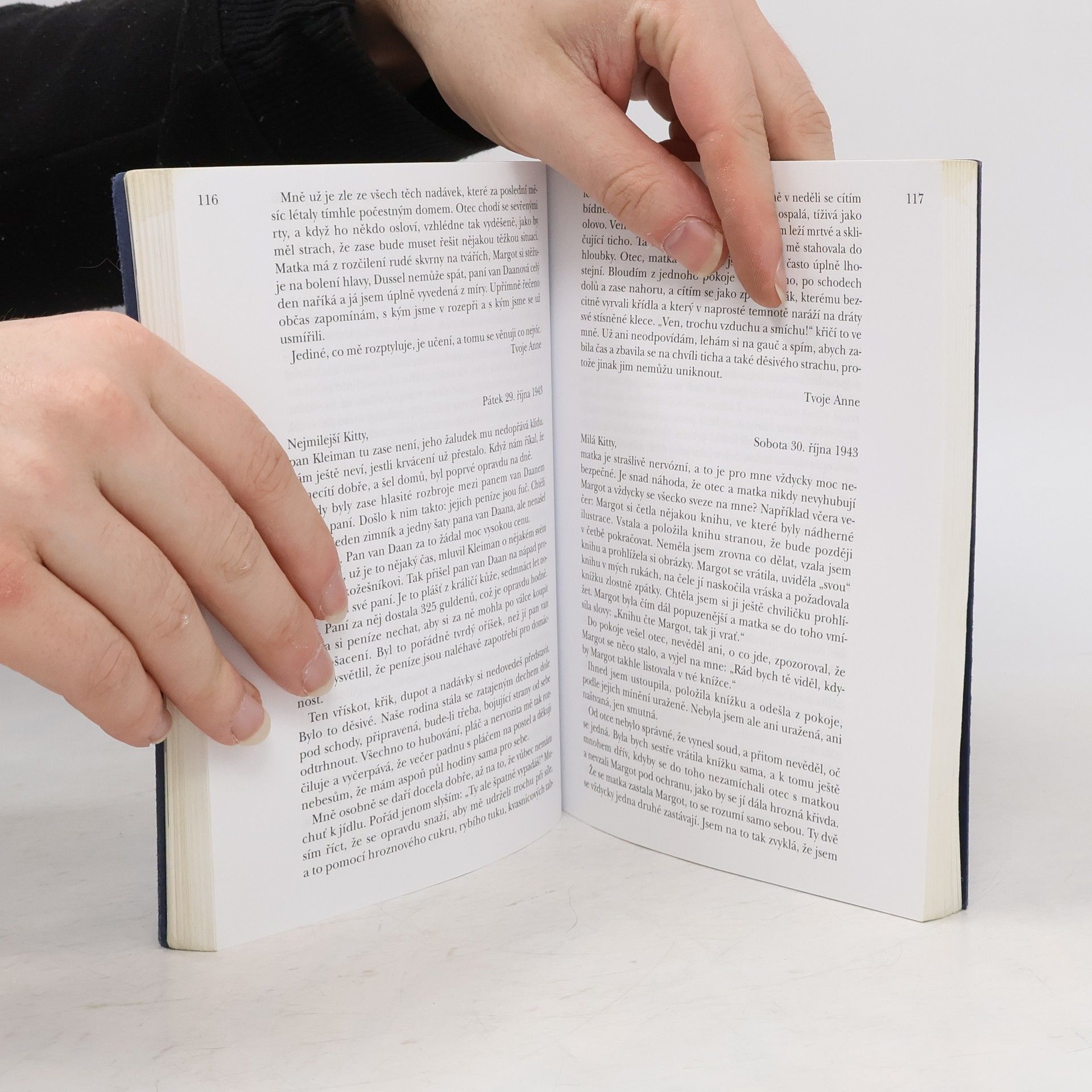Dospívající Anne psala od 12. června 1942 do 4. srpna 1944 deník. Po prozrazení skrýše byla rodina odvezena do koncentračních táborů v Německu, přežil jen otec. Anne zahynula v Bergen-Belsenu. Po válce otec deník vydal, byl přeložen do mnoha jazyků a zdramatizován. Toto české vydání obsahuje poprvé nově nalezené a dosud nepublikované stránky.