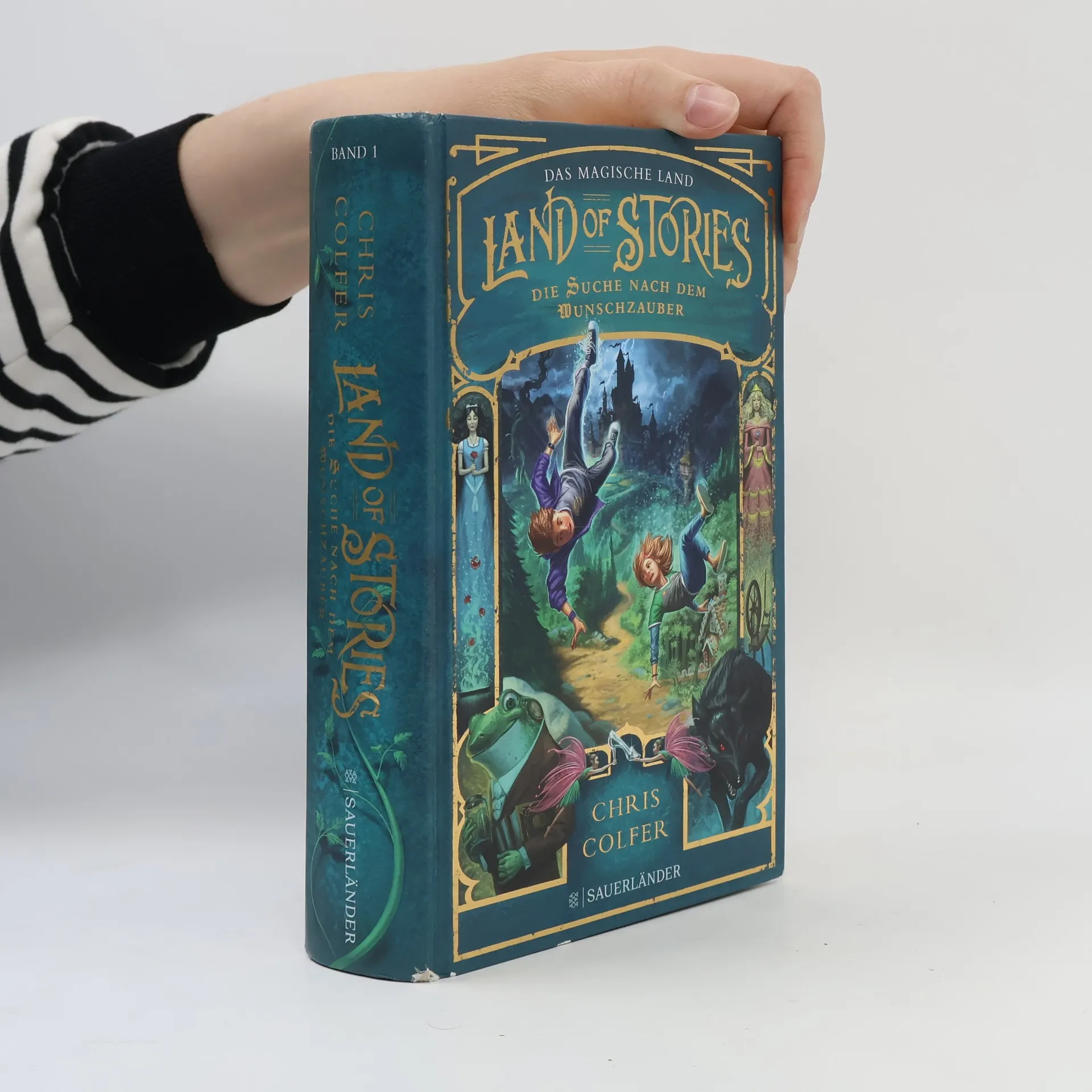 »In Colfers magischen Reichen steckt mehr, als Disney je zu träumen wagte.« USA Today Als Alex und ihr Zwillingsbruder Conner ein altes Buch zum Geburtstag geschenkt bekommen, ahnen sie nicht, dass der dicke Schmöker ein Portal in ein magisches Reich ist. Sie geraten in eine Welt, in der es nicht nur gute Feen und verwunschene Prinzen gibt, sondern auch ein böses Wolfsrudel und eine noch viel bösere Königin. Doch ganz so einfach ist die Sache mit Gut und Böse leider nicht. Denn in all den Jahren nach dem Happy End haben die Märchenwesen einige Marotten entwickelt, was die Zwillinge in so manche verzwickte Lage bringt. Außerdem haben sie nicht den blassesten Schimmer, wie sie wieder nach Hause finden sollen. In einem geheimnisvollen Tagebuch steht die Lösung – doch hinter dem ist auch die böse Königin her … Alle Bände der Serie »Land of Stories. Das magische Land«: Band 1: Die Suche nach dem Wunschzauber Band 2: Die Rückkehr der Zauberin Band 3: Eine düstere Warnung Band 4: Ein Königreich in Gefahr Band 5: Die Macht der Geschichten Band 6: Der Kampf der Welten