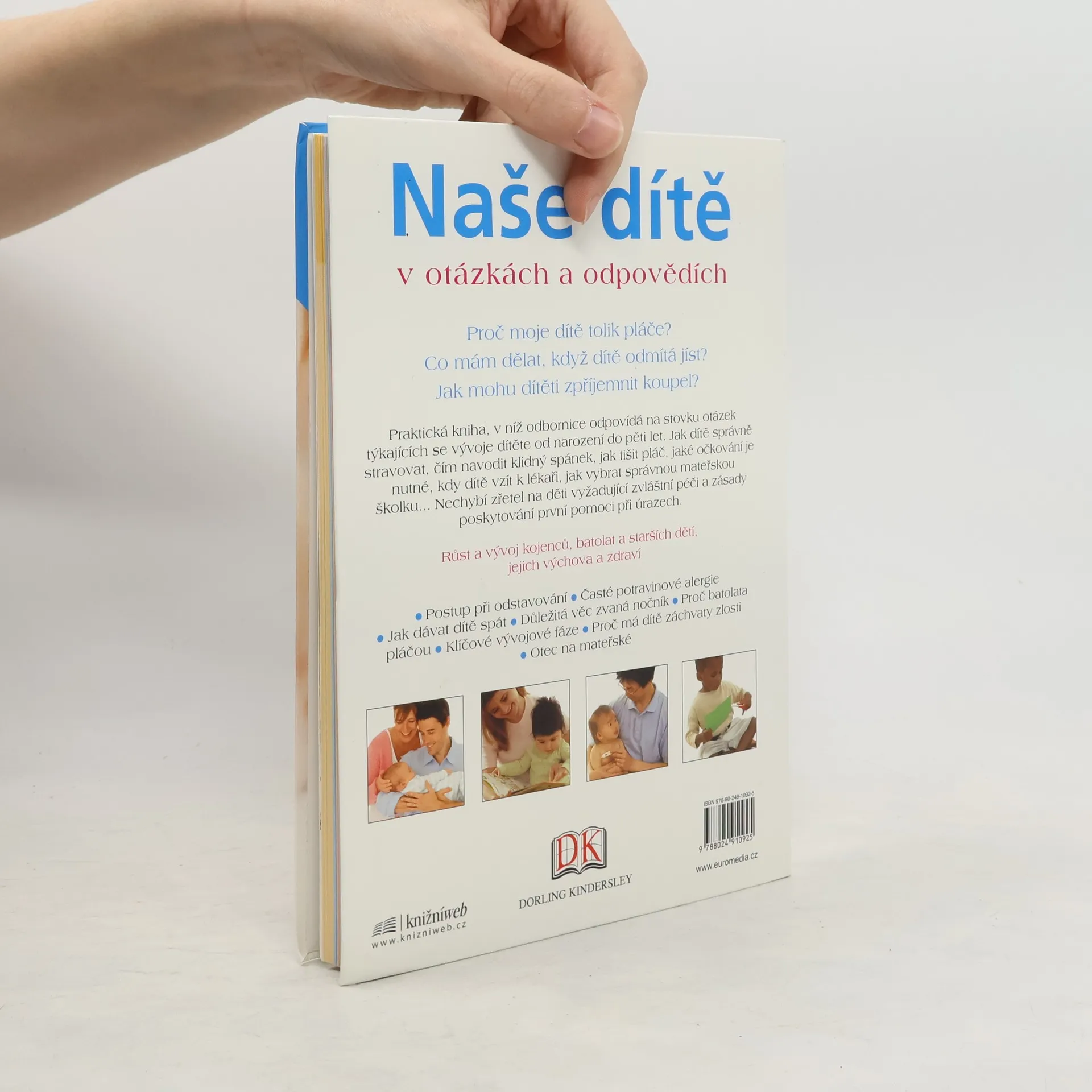 Praktický rádce, v níž odbornice odpovídá na stovku konkrétních otázek týkajících se vývoje dítěte od narození do pěti let. Jak dítě správně stravovat, čím navodit klidný spánek, jak tišit pláč, jaké očkování je nutné, kdy dítě vzít k lékaři, jak vybrat správnou mateřskou školku... Nechybí zřetel na děti vyžadující zvláštní péči a zásady poskytování první pomoci při úrazech.