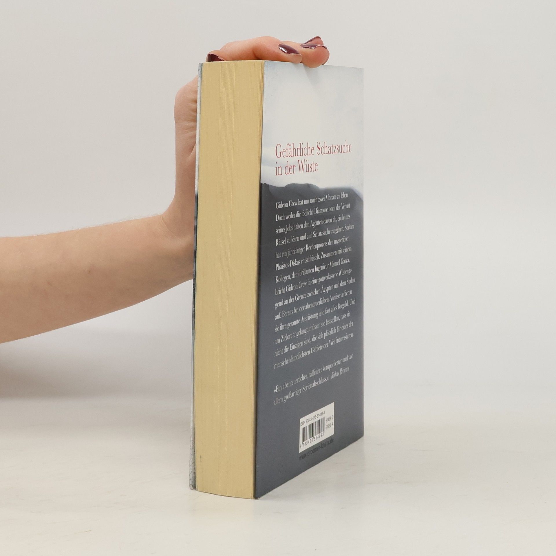 Das finale Abenteuer für Gideon Crew, den modernen Indiana Jones – ein actiongeladener Wissenschafts-Thriller aus der Feder des Bestseller-Duos Preston/Child Was tut man, wenn man weiß, dass man nur noch zwei Monate zu leben hat? Gideon Crew geht auf Schatzsuche, denn soeben hat ein jahrelanger Rechenprozess den mysteriösen Phaistos-Diskus entschlüsselt. Zusammen mit Manuel Garza bricht Gideon in eine gottverlassene Wüstengegend an der Grenze zwischen Ägypten und dem Sudan auf. Bereits bei der abenteuerlichen Anreise verlieren sie ihre gesamte Ausrüstung und fast alles Bargeld. Und am Zielort angelangt, müssen sie feststellen, dass sie nicht die Einzigen sind, die sich plötzlich für eines der menschenfeindlichsten Gebiete der Welt interessieren. „Eine absolute Tour de Force. Gideon Crew könnte genauso gut in einem Kracher von Ludlum auftreten oder bei Ocean‘s Eleven mitmachen.“ David Baldacci „Douglas Preston und Lincoln Child sind Experten für atemberaubende Spannung, die dem Leser alles abverlangt und abgeht wie eine Rakete.“ Literaturmarkt. info „Es ist ein klassischer Actionthriller, der bestens unterhält.“ Neue Luzerner Zeitung zu „Mission – Spiel auf Zeit“ Die Gideon Crew-Thriller des Erfolgsduos Preston/Child: Mission – Spiel auf Zeit Countdown – Jede Sekunde zählt Lost Island – Expedition in den Tod Ice Limit – Abgrund der Finsternis