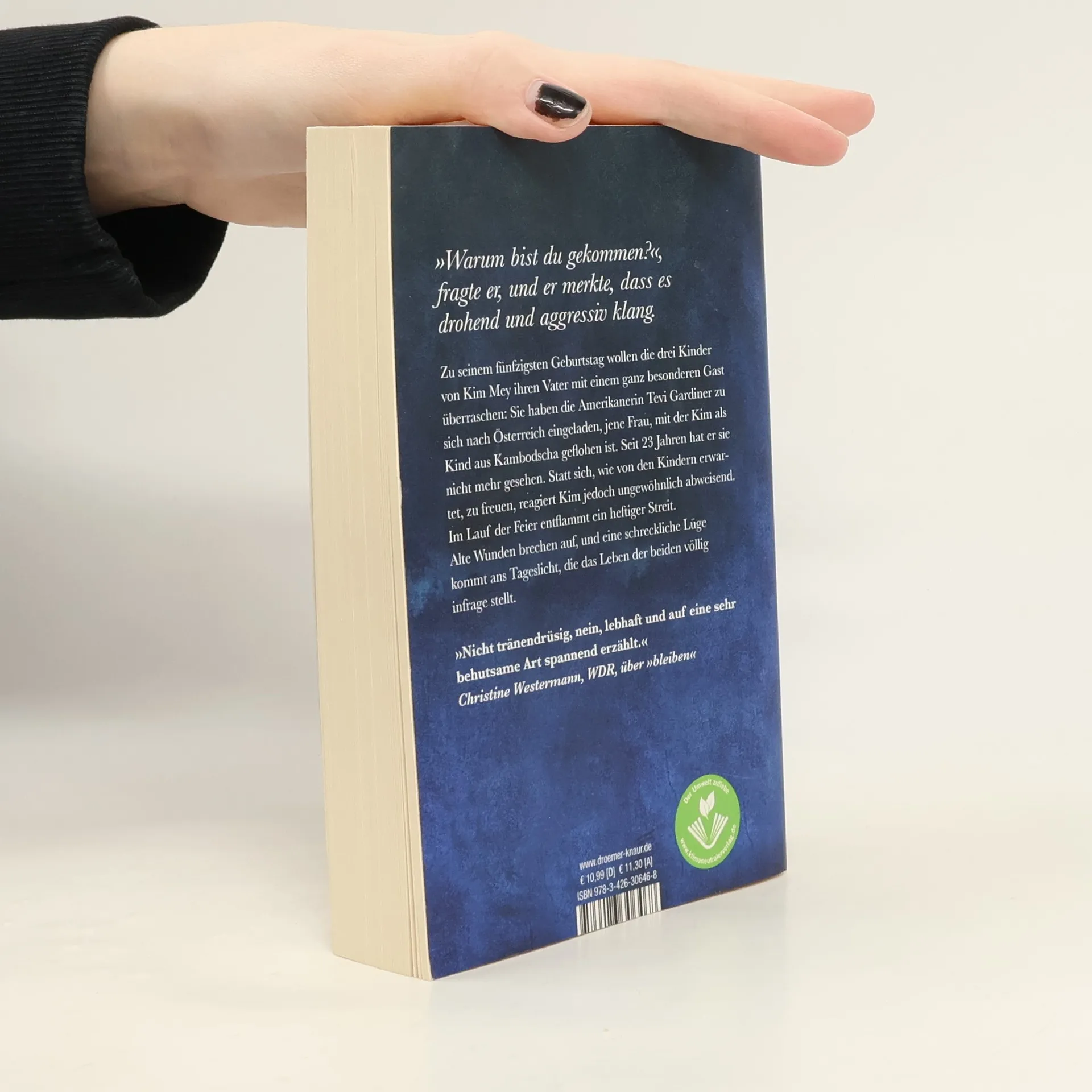 Zu seinem 50. Geburtstag möchten die drei Kinder von Kim Mey ihren Vater mit einem besonderen Gast überraschen: Tevi Gardiner, die Frau, mit der Kim als Kind aus Kambodscha geflohen ist und die er seit 25 Jahren nicht mehr gesehen hat. Doch anstelle von Freude reagiert Kim seltsam abweisend, und auch Ines, die Mutter der Kinder, begegnet Tevi kühl. Die jahrzehntelang verschwiegenen Umstände der dramatischen Flucht aus Kambodscha und das schreckliche Ende einer großen Liebe drängen sich nun unaufhaltsam in den Vordergrund. Eine scheinbar harmlose Überraschung verwandelt das Geburtstagsfest in ein Familien-Drama. Das schmerzhaft-empathische Werk der renommierten Autorin Judith W. Taschler thematisiert Familien-Beziehungen, Lebenslügen, große Liebe sowie Flucht und Heimkehr. In ihrer klaren Sprache schafft Taschler vielschichtige Figuren, die den Lesern unter die Haut gehen und lange im Gedächtnis bleiben. Sie beleuchtet Wendepunkte im Leben, erzählt raffiniert und psychologisch dicht, dabei stets mit Mitgefühl für ihre Charaktere, ohne kitschig zu werden. Die Begeisterung für die Autorin und ihre Schreibweise wird von Lesern und Kritikern gleichermaßen geteilt.