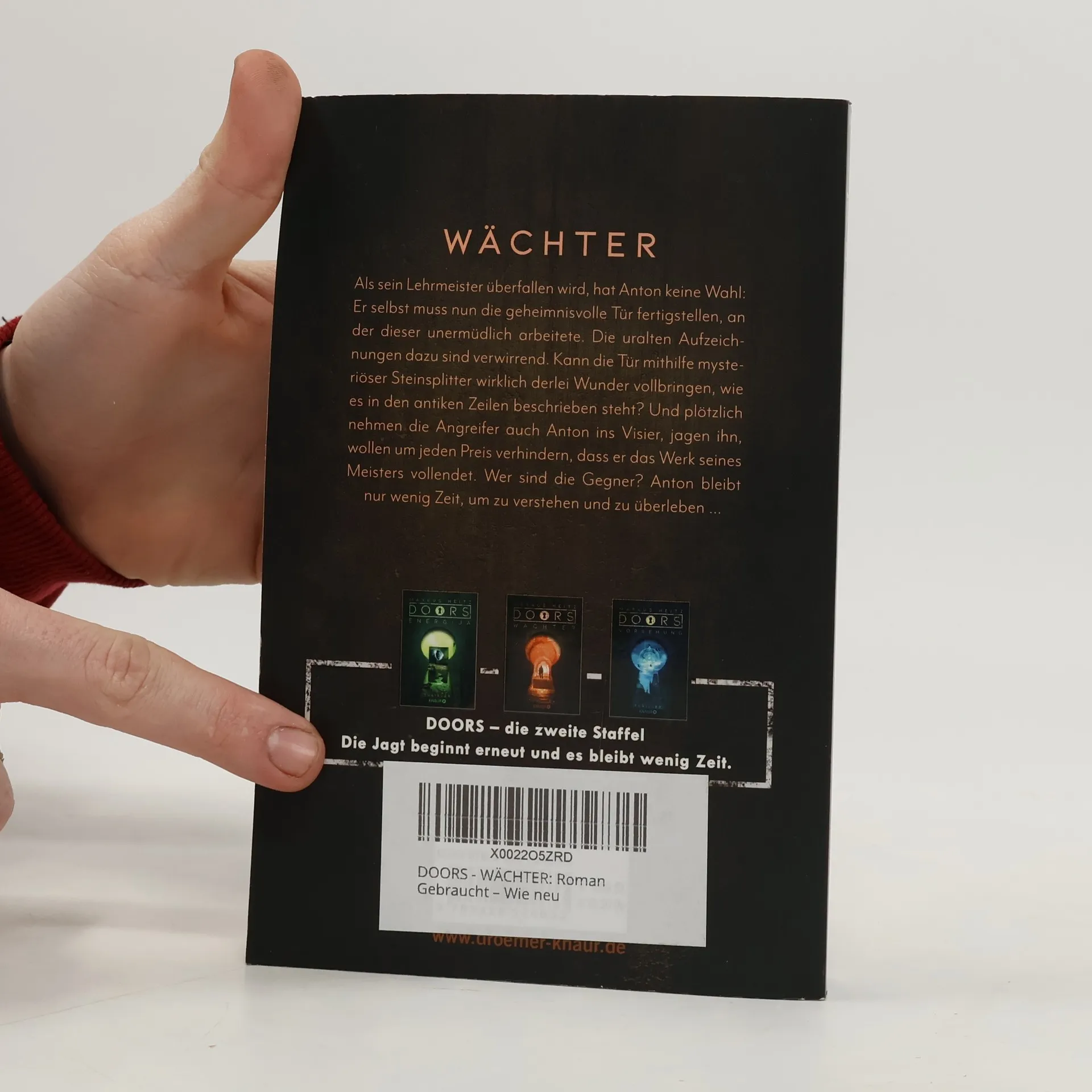 „DOORS“ - das innovative Buchkonzept von SPIEGEL-Bestseller-Autor Markus Heitz geht in die zweite Runde! In dieser Staffel wirst du erneut vor Entscheidungen gestellt: Am Ende der Pilotfolge „Drei Sekunden“ hast du die Wahl zwischen drei Büchern und alternativen Geschichten. Hast du dich für „DOORS – WÄCHTER“ entschieden? Begleite den Schreiner Anton, der im Auftrag seines Meisters eine geheimnisvolle Tür anfertigt und bald zum Gejagten wird. Nachdem Anton einen Überfall auf seinen alten Ausbilder nicht verhindern kann, landet dieser im Koma. Antons Familie bittet ihn, die Tür zu vollenden, an der der Meister gearbeitet hat. Die verwirrenden, uralten Aufzeichnungen erwähnen Steinsplitter und deren Fundorte. Kann die Tür wirklich die Wunder vollbringen, die in den antiken Texten beschrieben sind? Plötzlich wird Anton von einer Person namens Nótt verfolgt, die sein Leben auf den Kopf stellt. Auch die Angreifer von damals sind ihm auf der Spur und haben es auf ihn, die Unterlagen und die Tür abgesehen. Anton bleibt keine Wahl: Er muss die Tür fertigstellen, um zu verstehen und zu überleben… Bisher erschienen: DOORS - Staffel 1 und 2 sowie weitere Titel.