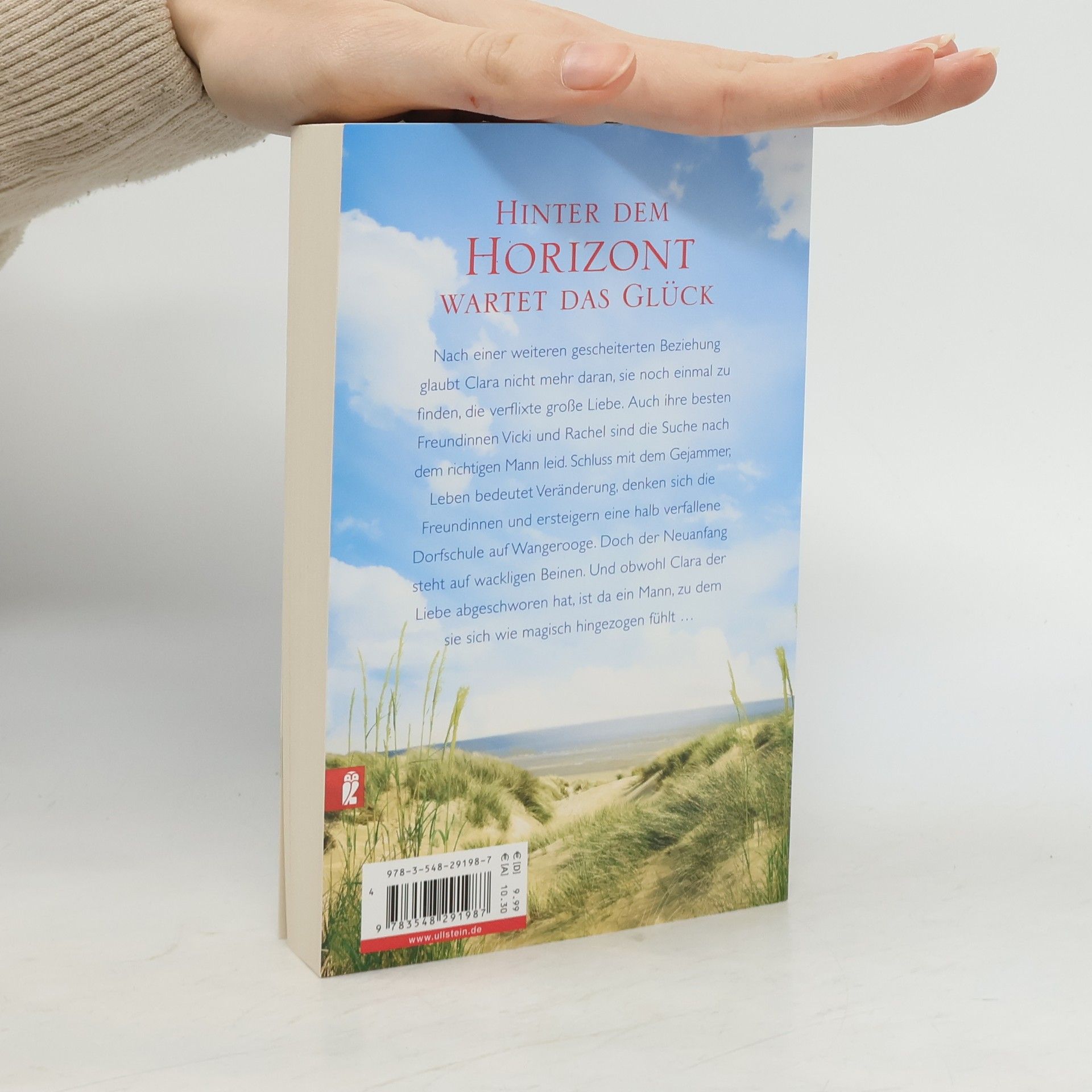 Hinter dem Horizont wartet das Glück Nach einer weiteren gescheiterten Beziehung, glaubt Clara nicht mehr daran, sie noch einmal zu finden, die verflixte große Liebe. Auch ihre beiden besten Freundinnen Vicki und Rachel sind die ewige Suche nach dem richtigen Mann leid. Schluss mit dem Gejammer, Leben bedeutet Veränderung, denken sich die Freundinnen und ersteigern im Internet eine halb verfallene Dorfschule auf Wangerooge. Doch der Neuanfang steht auf wackligen Beinen. Zum Glück ist da die lebenserfahrene Insulanerin Rieke, die ihnen den Kopf zurechtrückt, und ein geheimnisvoller Mann, von dem Clara sich wie magisch angezogen fühlt … Wenn die Wellen rauschen und die Sonne lacht, ist es Zeit, sich zu verlieben ...