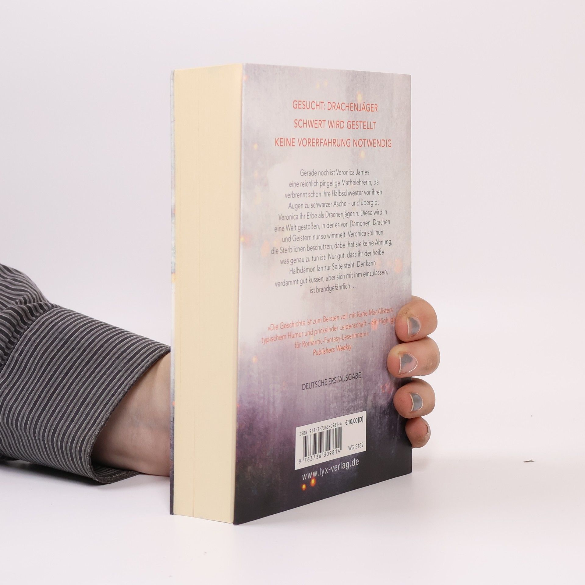 Gesucht: Drachenjäger Schwert wird gestellt. Keine Vorerfahrung notwendig. Gerade noch ist Veronica James eine reichlich pingelige Mathelehrerin, da verbrennt schon ihre Halbschwester vor ihren Augen zu schwarzer Asche - und übergibt Veronica ihr Erbe als Drachenjägerin. Diese wird in eine Welt gestoßen, in der es von Dämonen, Drachen und Geistern nur so wimmelt. Veronica soll nun die Sterblichen beschützen, dabei hat sie keine Ahnung, was genau zu tun ist! Nur gut, dass ihr der heiße Halbdämon Ian zur Seite steht. Der kann verdammt gut küssen, aber sich mit ihm einzulassen, ist brandgefährlich ... „Die Geschichte ist zum Bersten voll mit Katie MacAlisters typischem Humor und prickelnder Romantik - ein Highlight für Romantic-Fantasy-Leserinnen!“ PUBLISHERS WEEKLY Band 1 der „Dragonhunter-Diaries“-Serie von SPIEGEL-Bestseller-Autorin Katie MacAlister