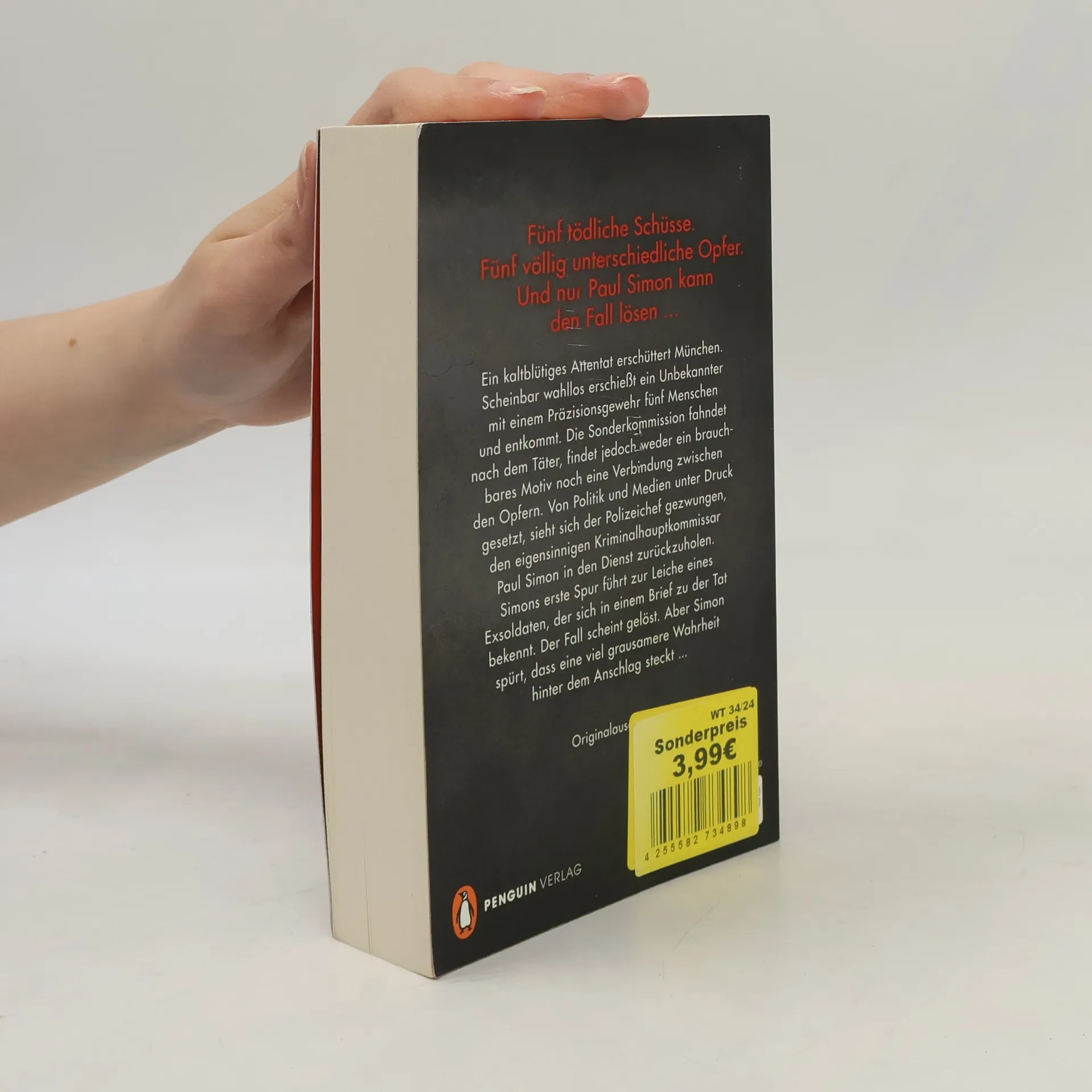 Ein Thriller wie eine nervenzerreißende Achterbahnfahrt! Kriminalhauptkomissar Paul Simon ermittelt wieder. Ein kaltblütiges Attentat erschüttert München. Scheinbar wahllos erschießt ein Unbekannter mit einem Präzisionsgewehr fünf Menschen und entkommt. Die Sonderkommission fahndet nach dem Täter, doch findet weder ein brauchbares Motiv noch eine Verbindung zwischen den Opfern. Von Politik und Medien unter Druck gesetzt, sieht sich der Polizeichef gezwungen, den eigensinnigen Kriminalhauptkommissar Paul Simon in den Dienst zurückzuholen. Simons erste Spur führt zu der Leiche eines Exsoldaten, der sich in einem Brief zu der Tat bekennt. Der Fall scheint gelöst. Aber Simon spürt, dass eine viel grausamere Wahrheit hinter dem Anschlag steckt ...