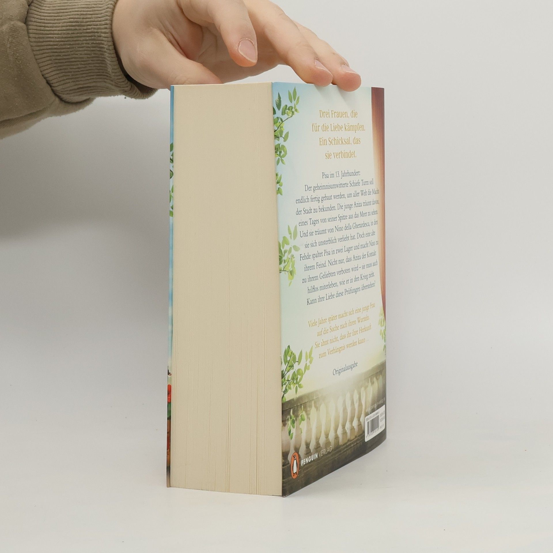 Drei Frauen, die für die Liebe kämpfen. Ein Schicksal, das sie alle verbindet. Pisa im 13. Jahrhundert: Der geheimnisumwitterte Schiefe Turm soll endlich fertig gebaut werden, um aller Welt die Macht der Stadt zu bekunden. Die junge Aziza träumt davon, eines Tages von seiner Spitze aus das Meer zu sehen. Und sie träumt von Nino della Gherardesca, in den sie sich unsterblich verliebt hat. Doch eine alte Fehde spaltet Pisa in zwei Lager und macht Nino zu ihrem Feind. Nicht nur, dass Aziza der Kontakt zu ihrem Geliebten verboten wird – sie muss auch hilflos miterleben, wie er in den Krieg zieht. Kann ihre Liebe diese Prüfungen überstehen? Viele Jahre später macht sich eine junge Frau auf die Suche nach ihren Wurzeln. Sie ahnt nicht, dass ihr ihre Herkunft zum Verhängnis werden kann …