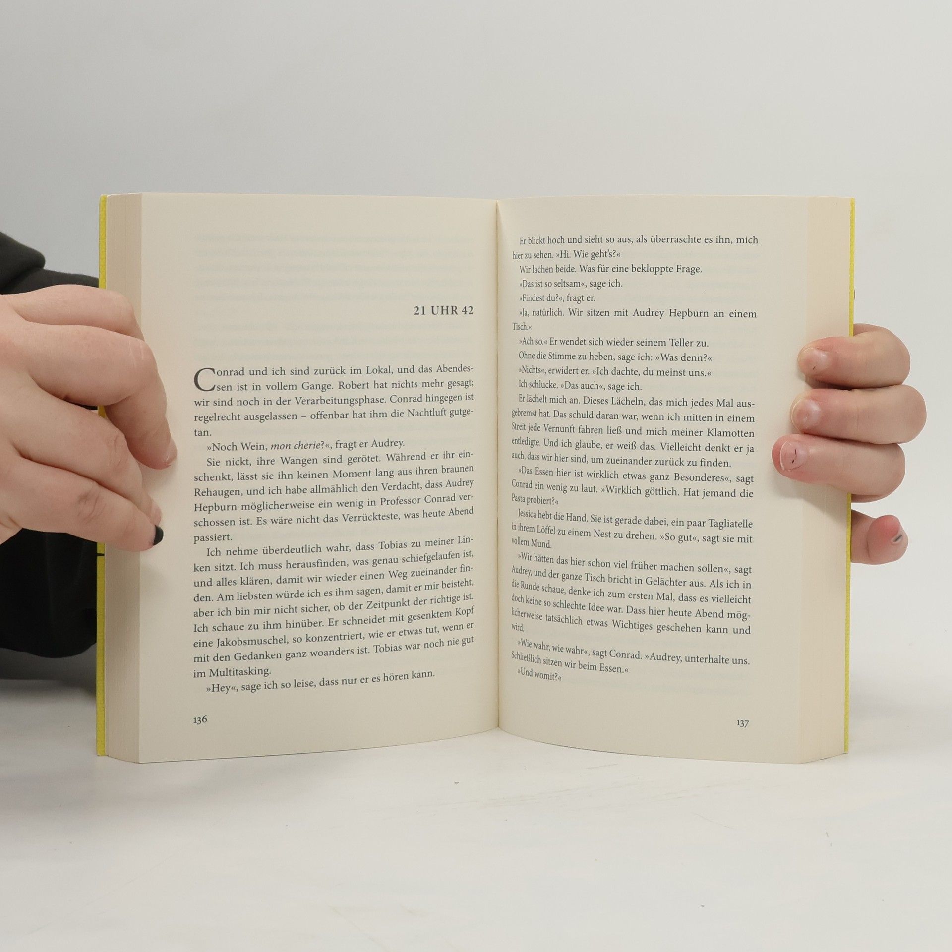 Es beginnt wie in einem Traum. Um halb acht Uhr abends betritt Sabrina ein New Yorker Restaurant, um nach guter alter Tradition mit ihrer besten Freundin Jessica Geburtstag zu feiern. Als sie durch die Tür tritt, traut sie ihren Augen nicht: Neben Jess erwarten sie dort in bester Feierlaune Sabrinas ehemaliger Philosophie-Professor, ihr Vater, ihr Ex-Verlobter Tobias – und Audrey Hepburn. Sie alle sind Wunschgäste einer geheimen Liste, die Sabrina vor langer Zeit anfertigte. Sabrina ist verzaubert und verwirrt, ihren Vater hat sie seit 20 Jahren nicht gesehen und Tobias, ihre große Liebe, stahl sich urplötzlich aus ihrem Leben. Darf sie auf eine zweite Chance hoffen? Und dann ist da ja auch noch Audrey Hepburn ...