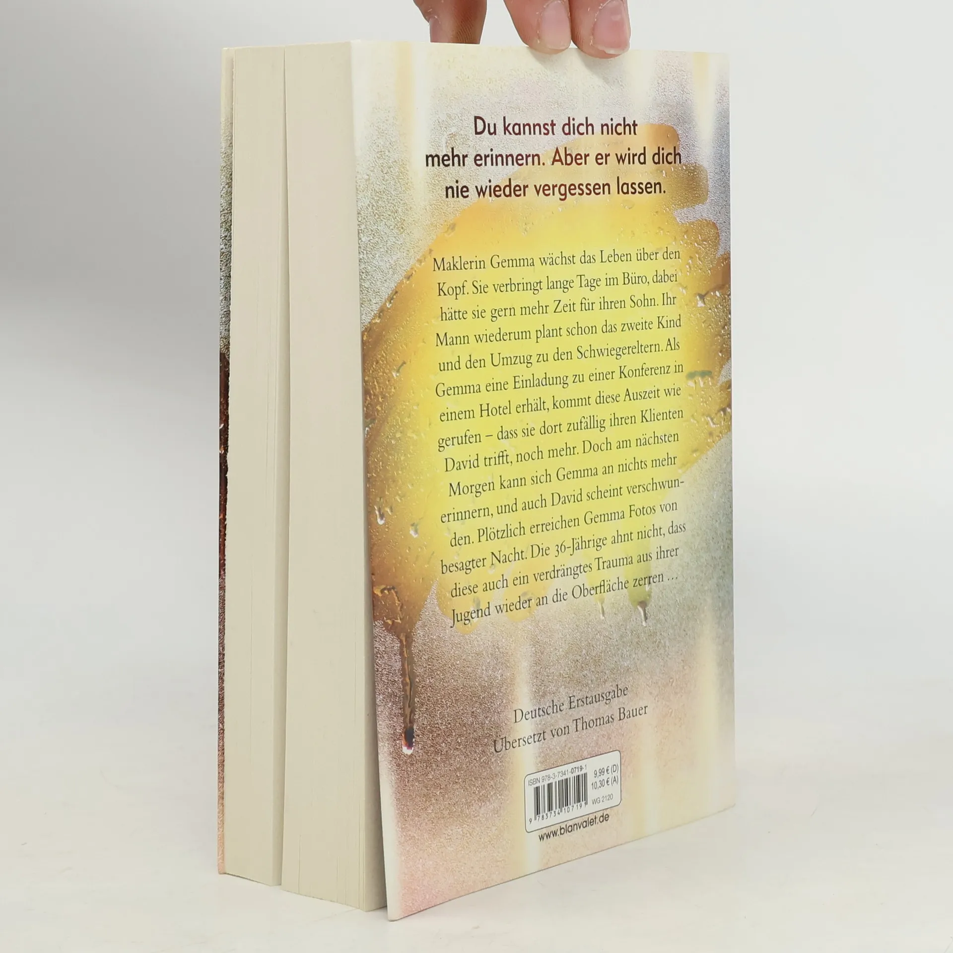 Du kannst dich nicht mehr erinnern. Aber er wird dich nie wieder vergessen lassen. Maklerin Gemma wächst das Leben über den Kopf. Sie verbringt lange Tage im Büro, dabei hätte sie gern mehr Zeit für ihren Sohn. Ihr Mann wiederum plant schon das zweite Kind und den Umzug zu den Schwiegereltern. Als Gemma eine Einladung zu einer Konferenz in einem Hotel erhält, kommt diese Auszeit wie gerufen – dass sie dort zufällig ihren Klienten David trifft, noch mehr. Doch am nächsten Morgen kann sich Gemma an nichts mehr erinnern, und auch David scheint verschwunden. Plötzlich erreichen Gemma Fotos von besagter Nacht. Die 36-Jährige ahnt nicht, dass diese auch ein verdrängtes Trauma aus ihrer Jugend wieder an die Oberfläche zerren …