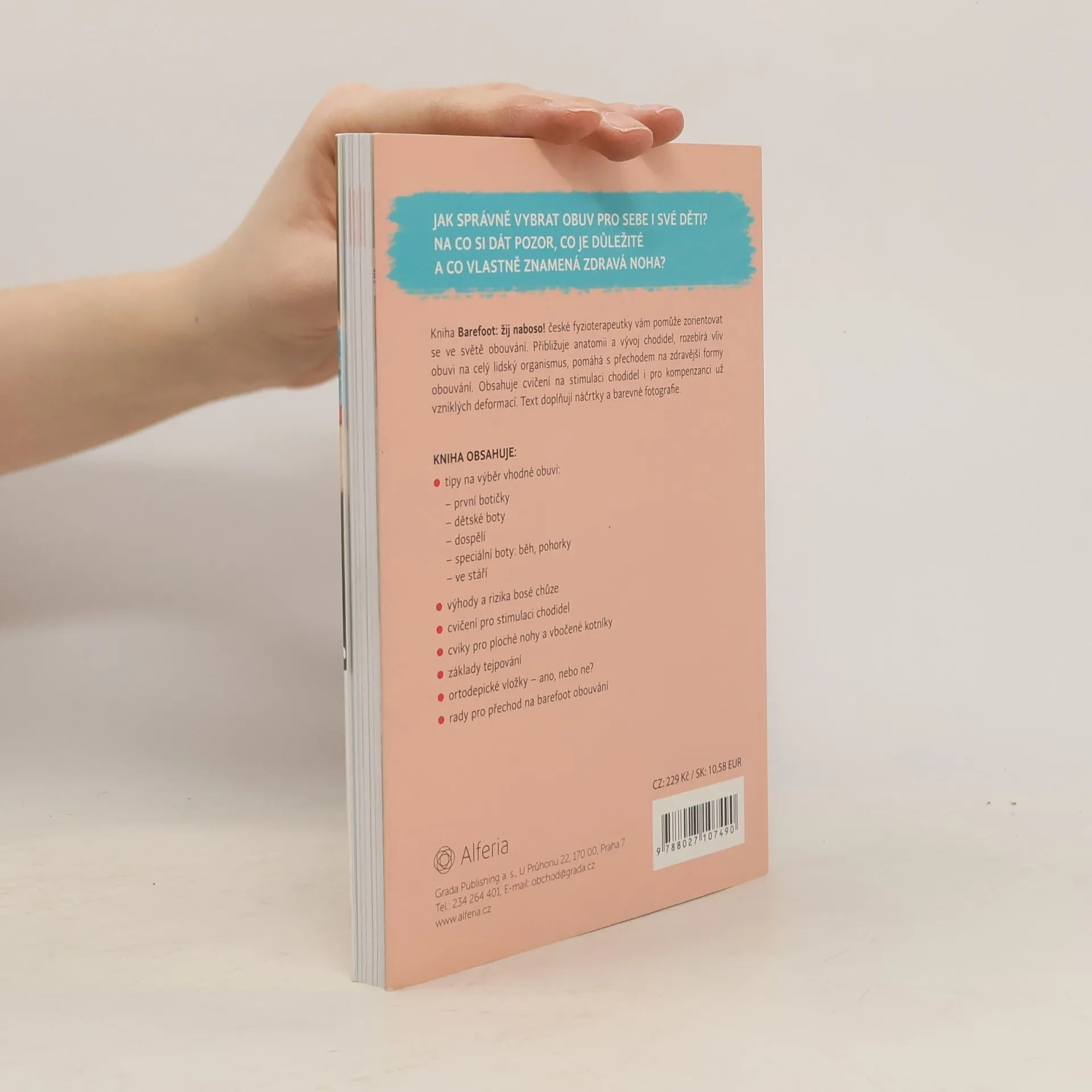 Jak správně vybrat obuv pro sebe i své děti? Na co si dát pozor, co je důležité a co vlastně znamená zdravá noha? Barefoot: Žij naboso od české fyzioterapeutky vám pomůže zorientovat se ve světě obouvání. Přibližuje anatomii a vývoj chodidel, rozebírá vliv obuvi na celý lidský organismus, pomáhá v přechodu na zdravější formy obouvání. Obsahuje cvičení na stimulaci chodidel i pro kompenzanci už vzniklých deformací. Text doplňují náčrtky a barevné fotografie.